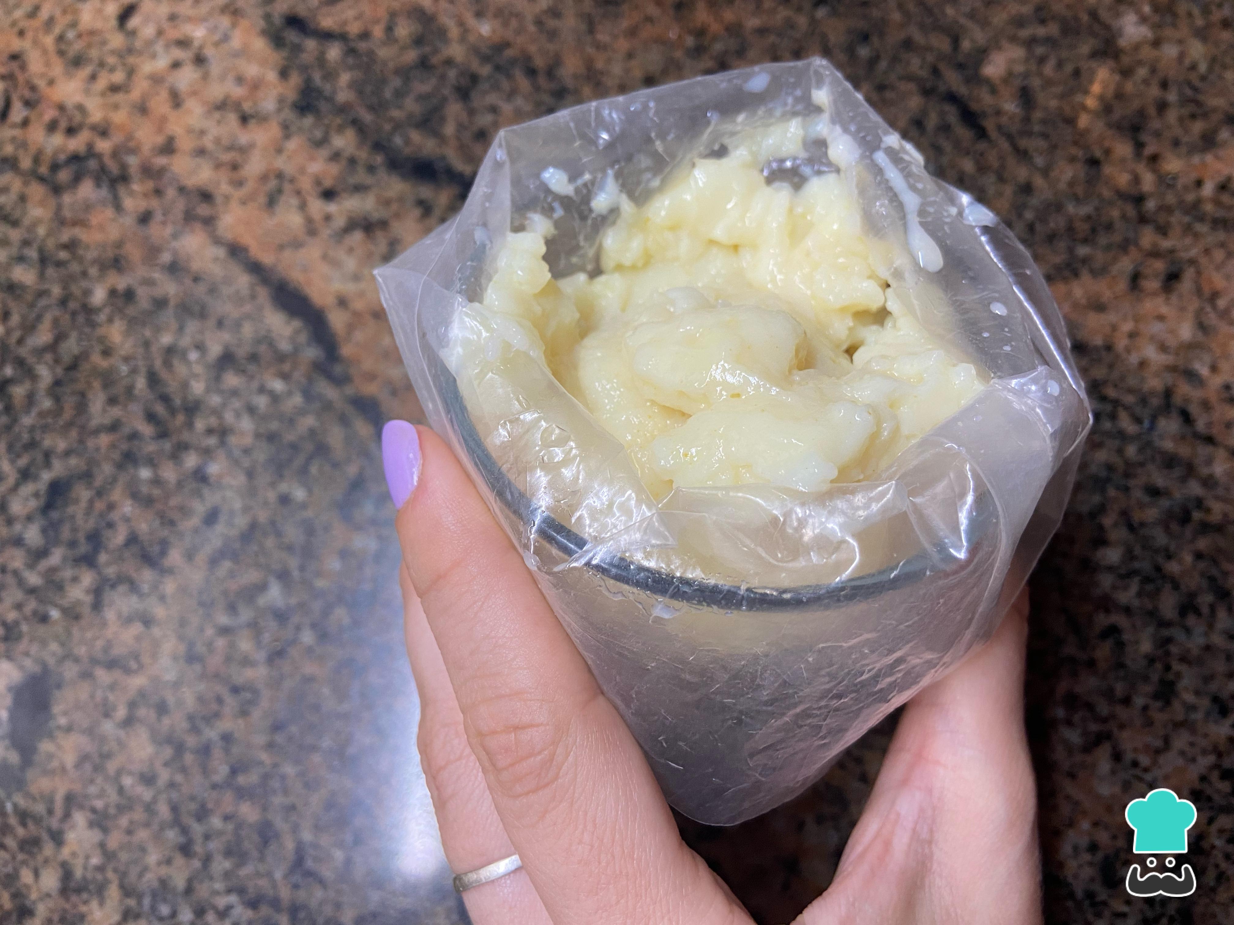 Truco: si no tienes manga, puedes utilizar un sachet de leche vacío y limpio, también puedes agregarla con una cuchara.