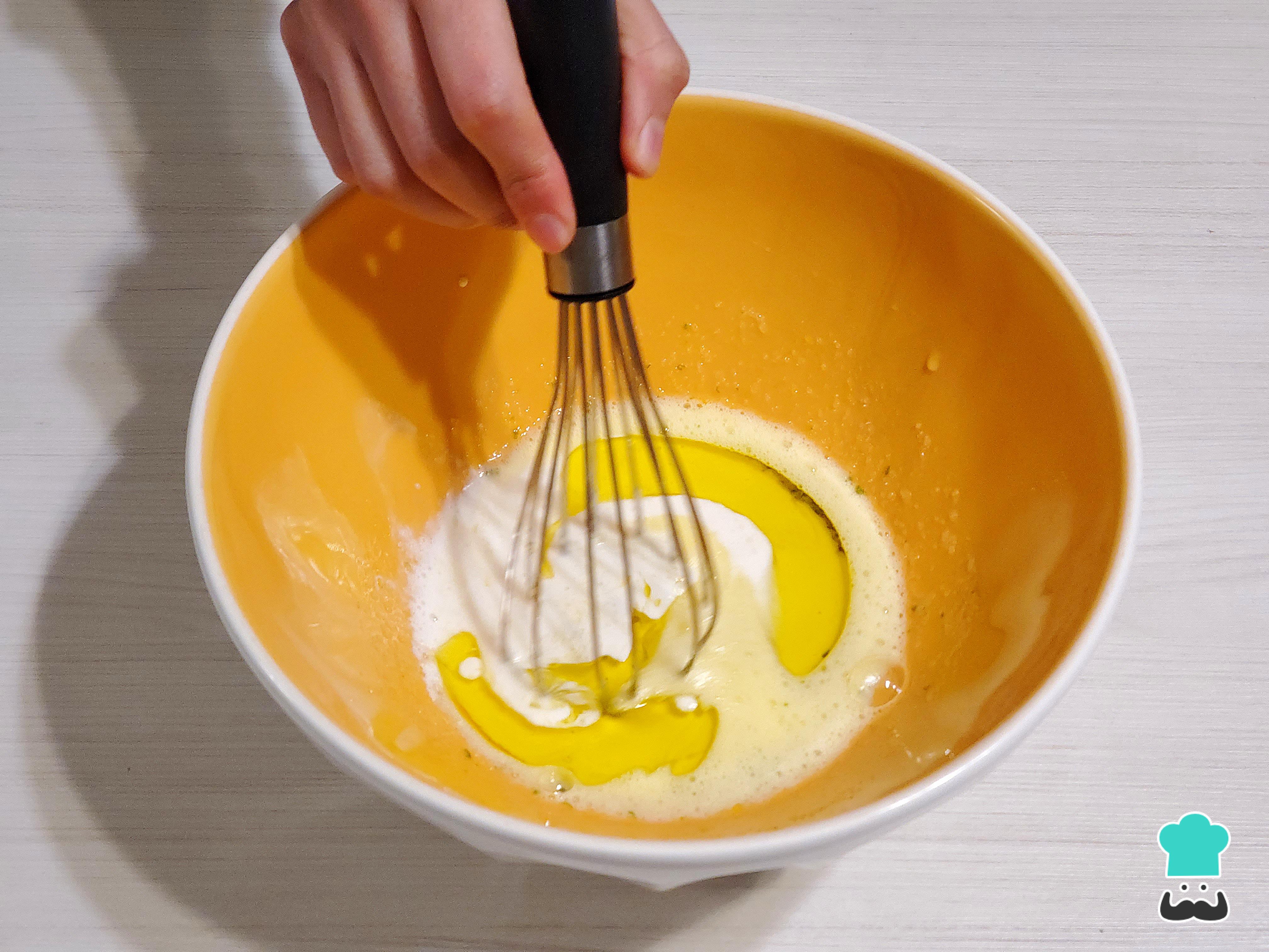 Empieza colocando en un bowl los huevos a temperatura ambiente, la leche y el azúcar, mezcla bien utilizando un batidor de globo solo hasta que se integren. Además, puedes aromatizar con esencia de naranja, vainilla o también incluir la ralladura de cítricos.