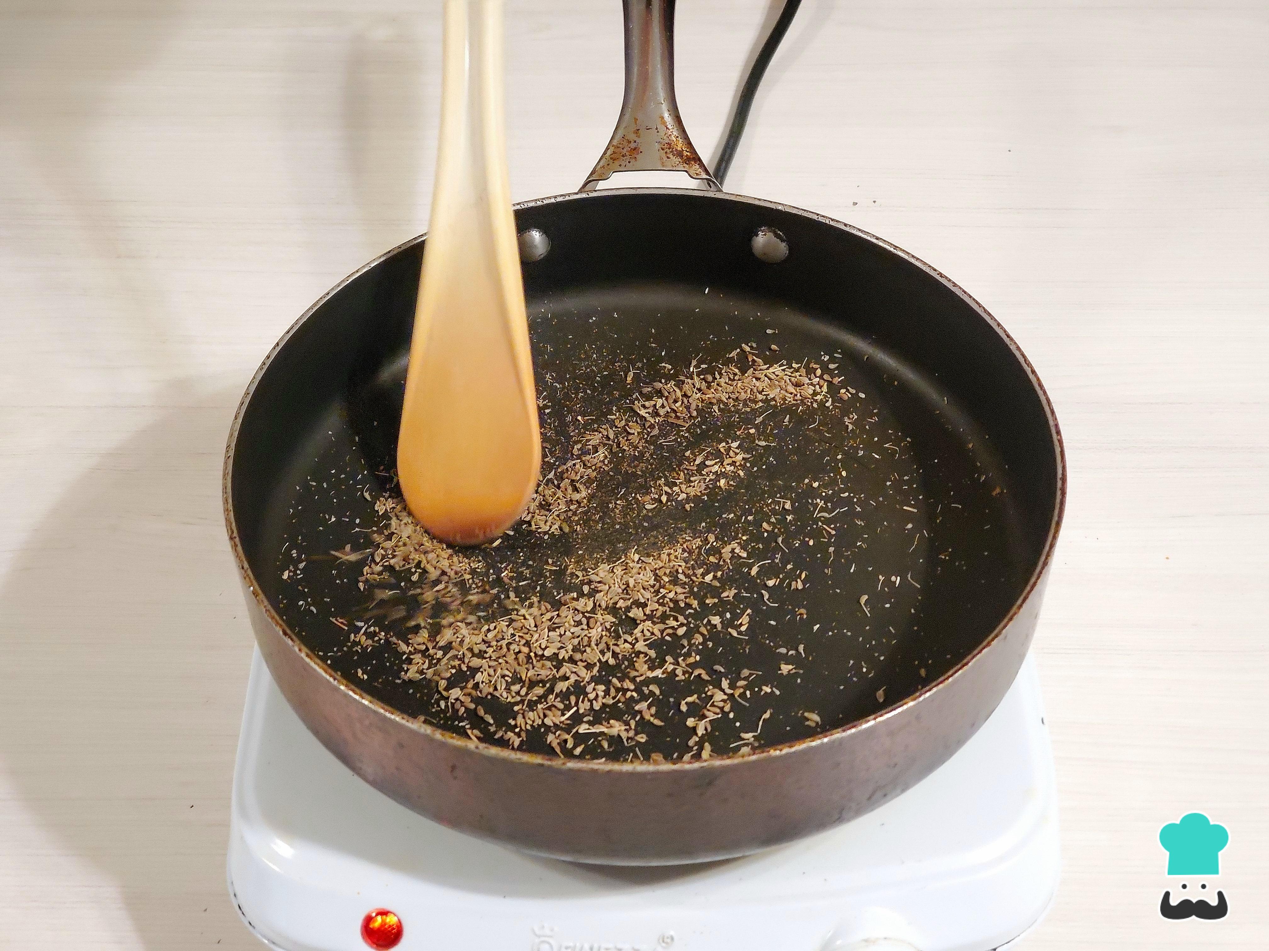 Aparte, tuesta las semillas de anís. Para hacerlo, coloca una sartén a fuego medio-alto y vuelca las semillas. Remuévelas esporádicamente hasta que empiecen a soltar su olor y a tomar un poco de color. Luego, retíralas del fuego y déjalas enfriar.
