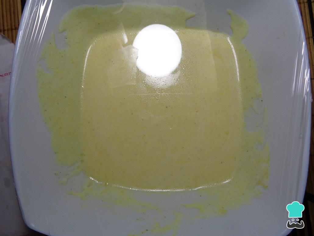 Una vez lista nuestra mezcla, la cubrimos con un poco de plástico film y la llevamos a reposar por 15 minutos a la nevera.