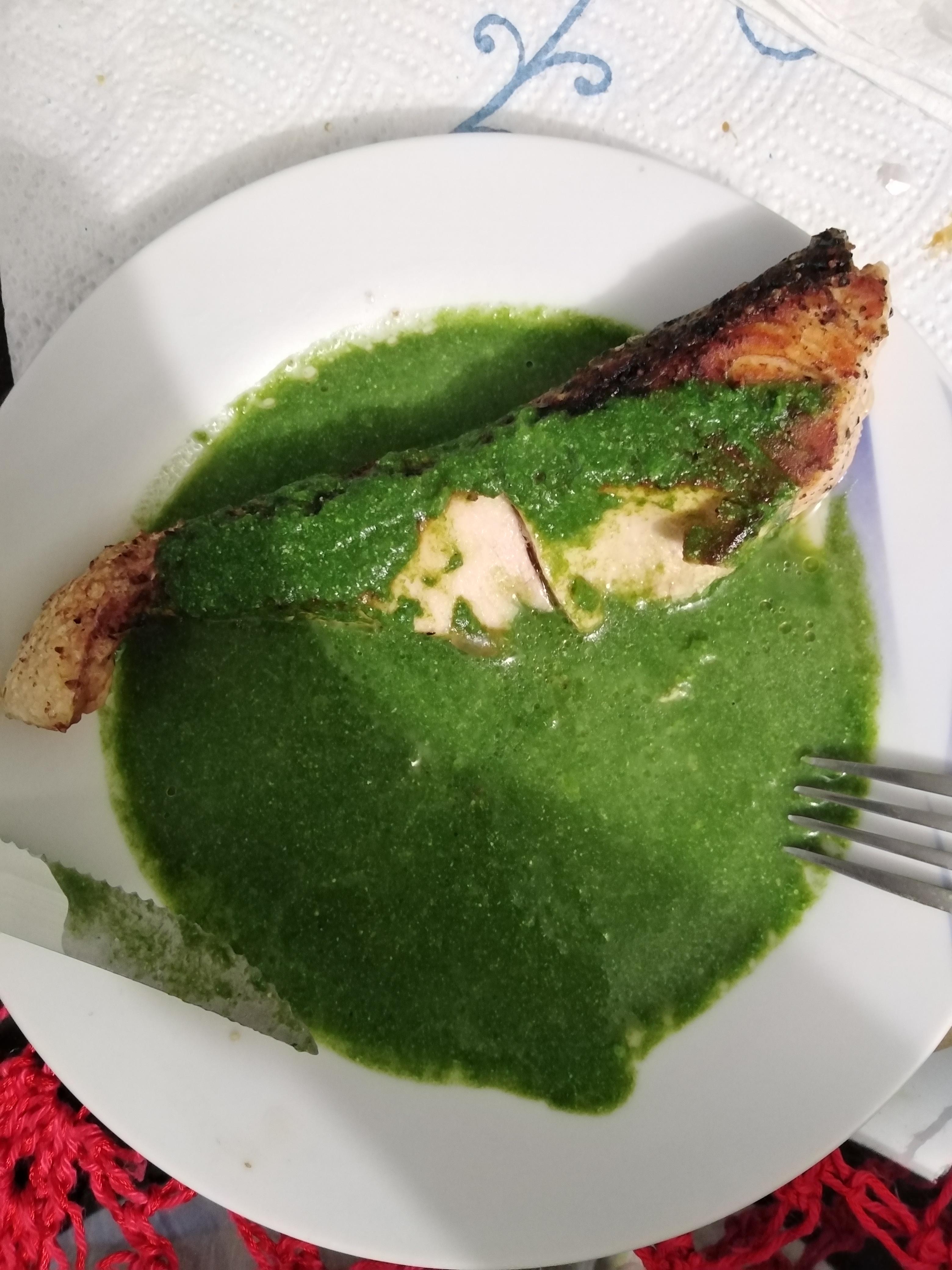 Es momento de servir el salmón y disfrutar con la salsa de espinaca, esta preparación es ideal para consumir acompañada de un arroz con almendras. Si te ha gustado esta receta, tienes algún comentario o inquietud, danos tu opinión.