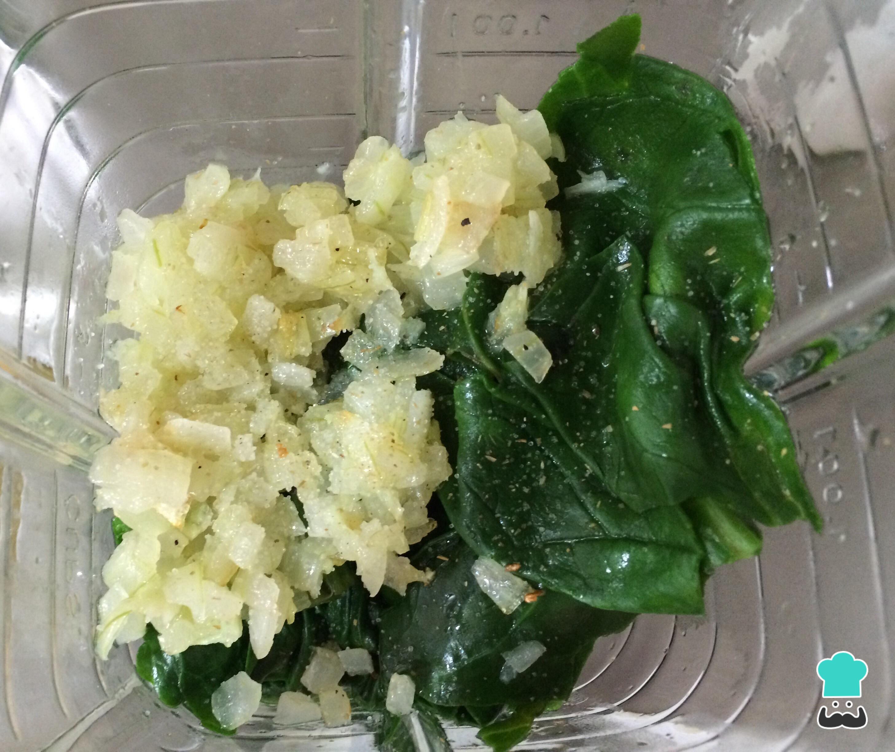Es momento de licuar la espinaca, la cebolla y el ajo con un poco de caldo de verduras o agua, hasta obtener una mezcla homogénea y suave.