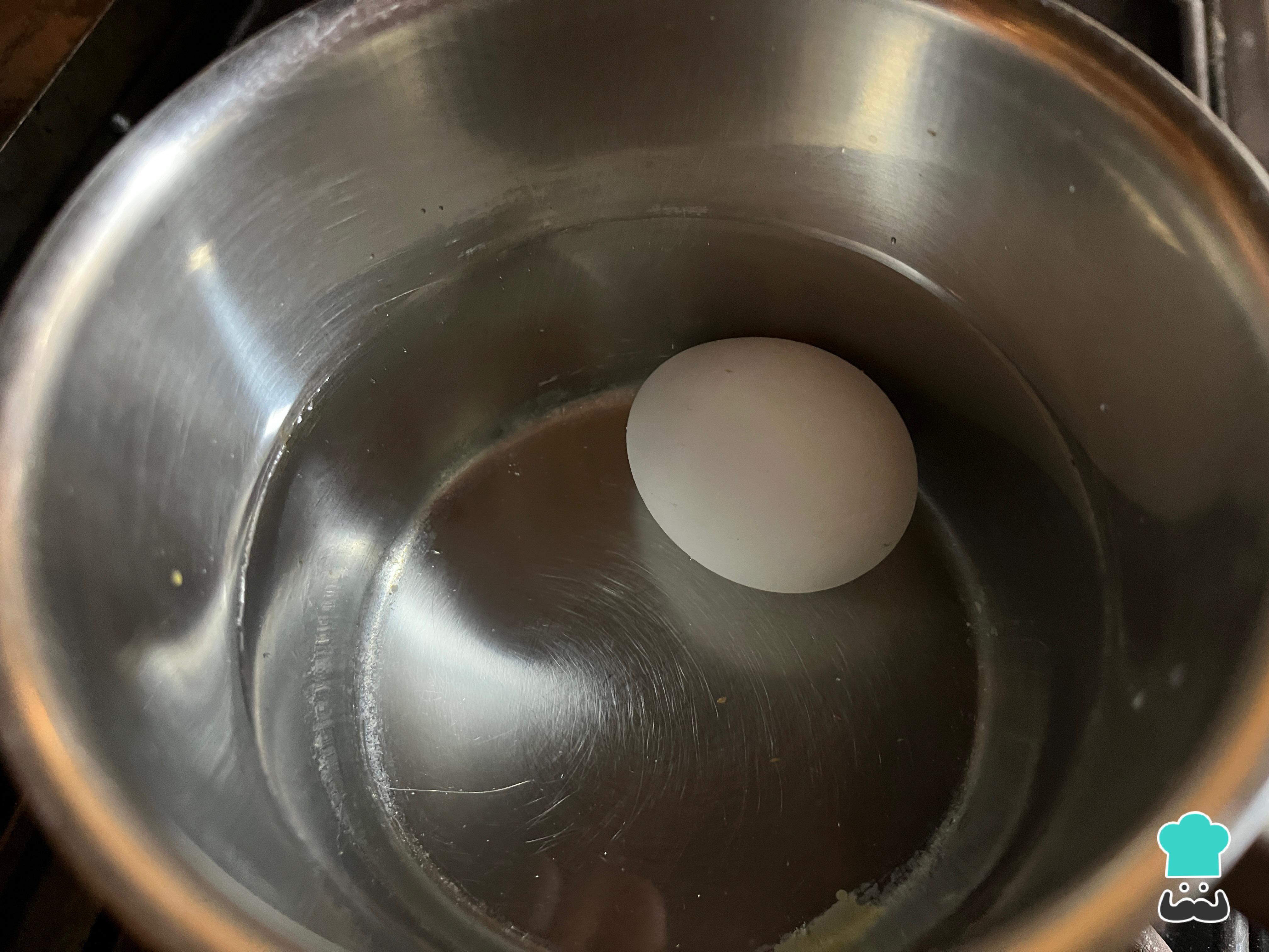 El primer paso para hacer la salsa de ajo venezolana consiste en hervir el huevo en abundante agua por unos 12 minutos. Llena la cacerola con agua fría para disponer en ella el huevo y llévalo al fuego. Este es el paso diferencial de la receta original, ya que al cocinar el huevo, protegemos nuestra salud.