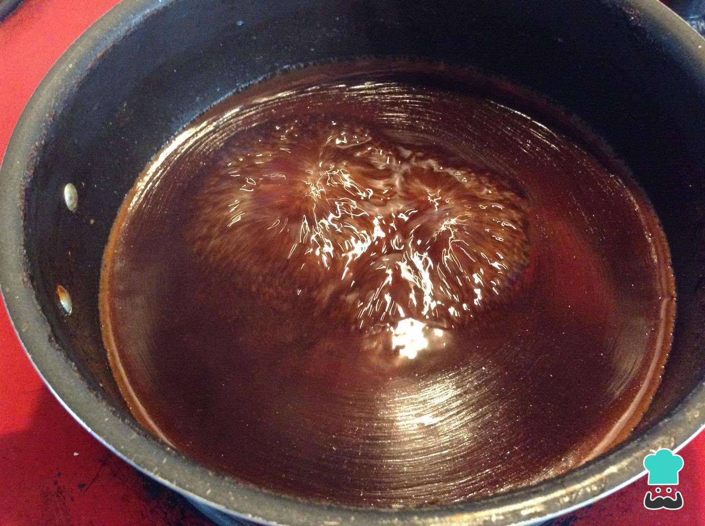 Adiciona en la olla todos los ingredientes menos la maicena o fécula de maíz y lleva la salsa teriyaki a fuego medio para que podamos realizarla. Lo ideal es que esté en el fuego durante 20 minutos aproximadamente.