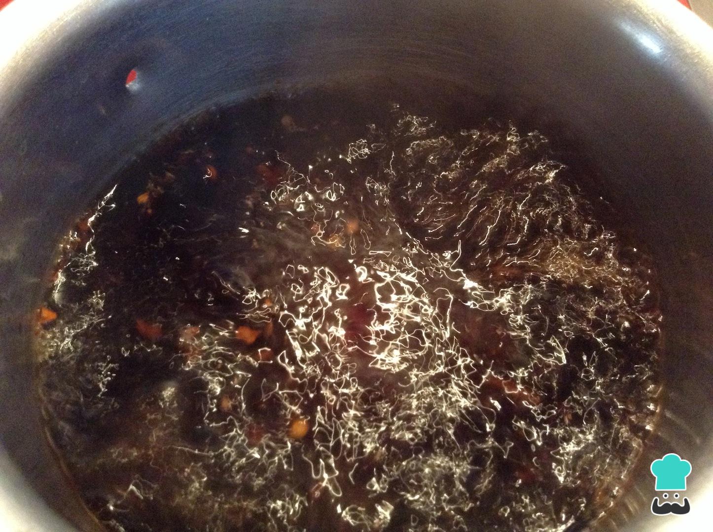 Cuando la preparación anterior alcanza el punto de ebullición baja el fuego, lo importante es que nuestra salsa tome una consistencia espesa.