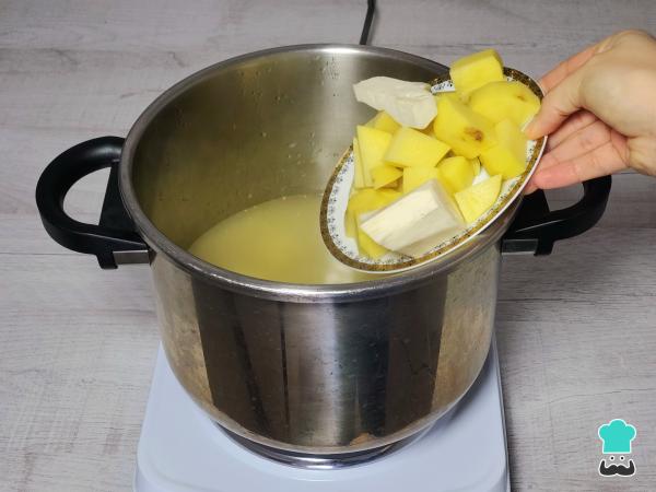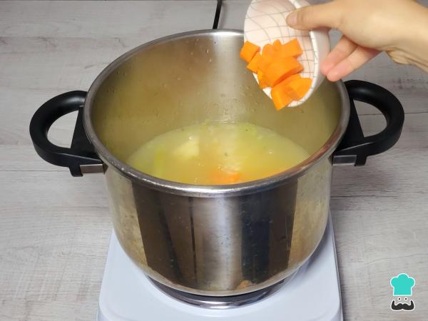 Con todos los ingredientes cocidos, suma las zanahorias cortadas en cuartos o en trozos irregulares. Permite que hiervan unos minutos más para que también se cocine.