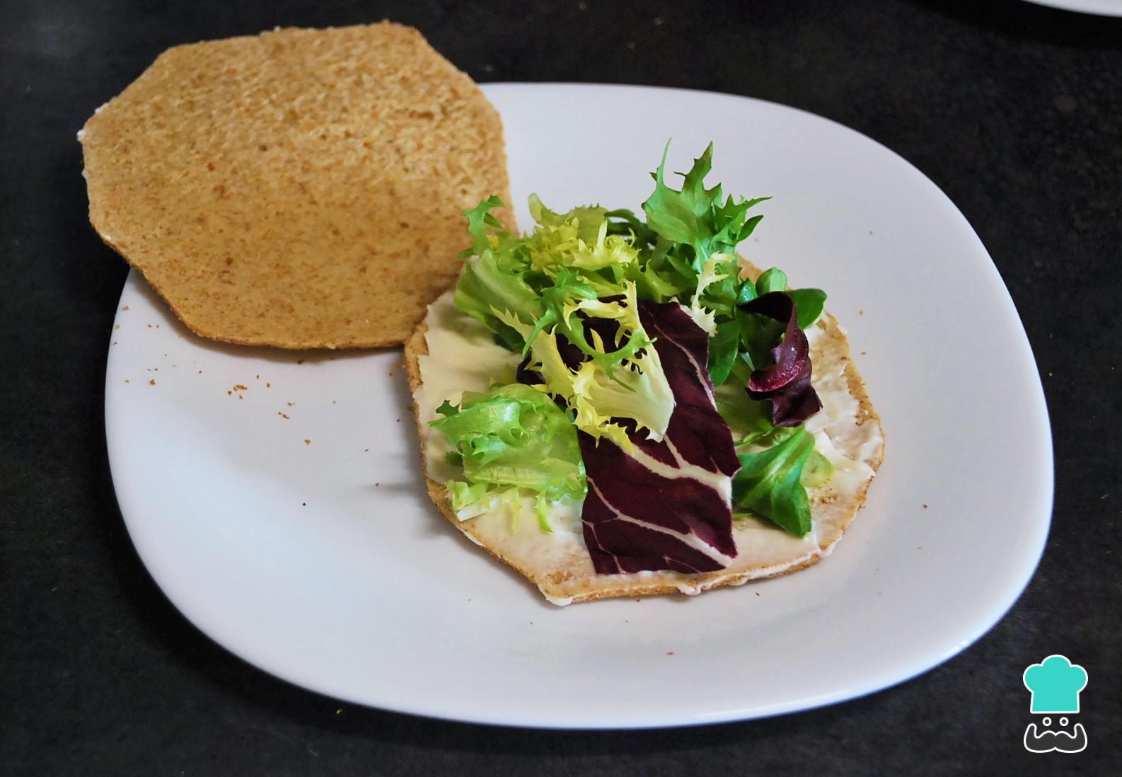 Truco: El pollo con el queso quedará como una tortilla asi que si quieres puedes cortar una pieza de la misma forma del pan para que la presentación sea más elegante
