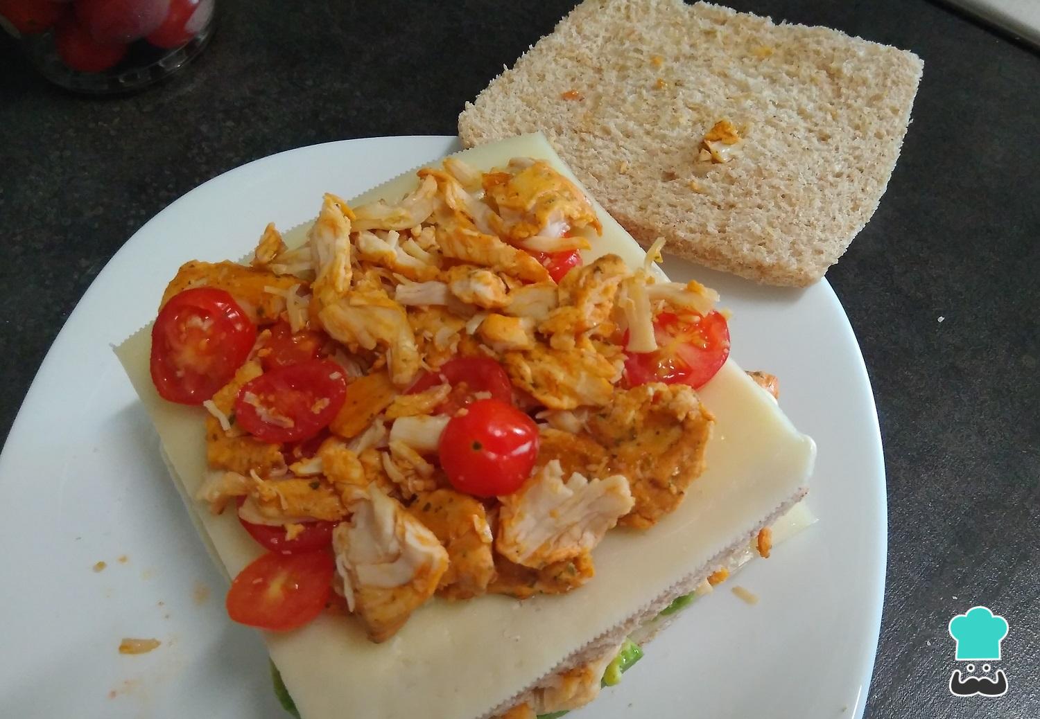En este caso yo he utilizado pollo asado, así que en teoría es un sándwich de pollo asado, pero lo puedes hacer con cualquier tipo de restos de pollo, ya sea a la plancha, frito o incluso hervido de una sopa.