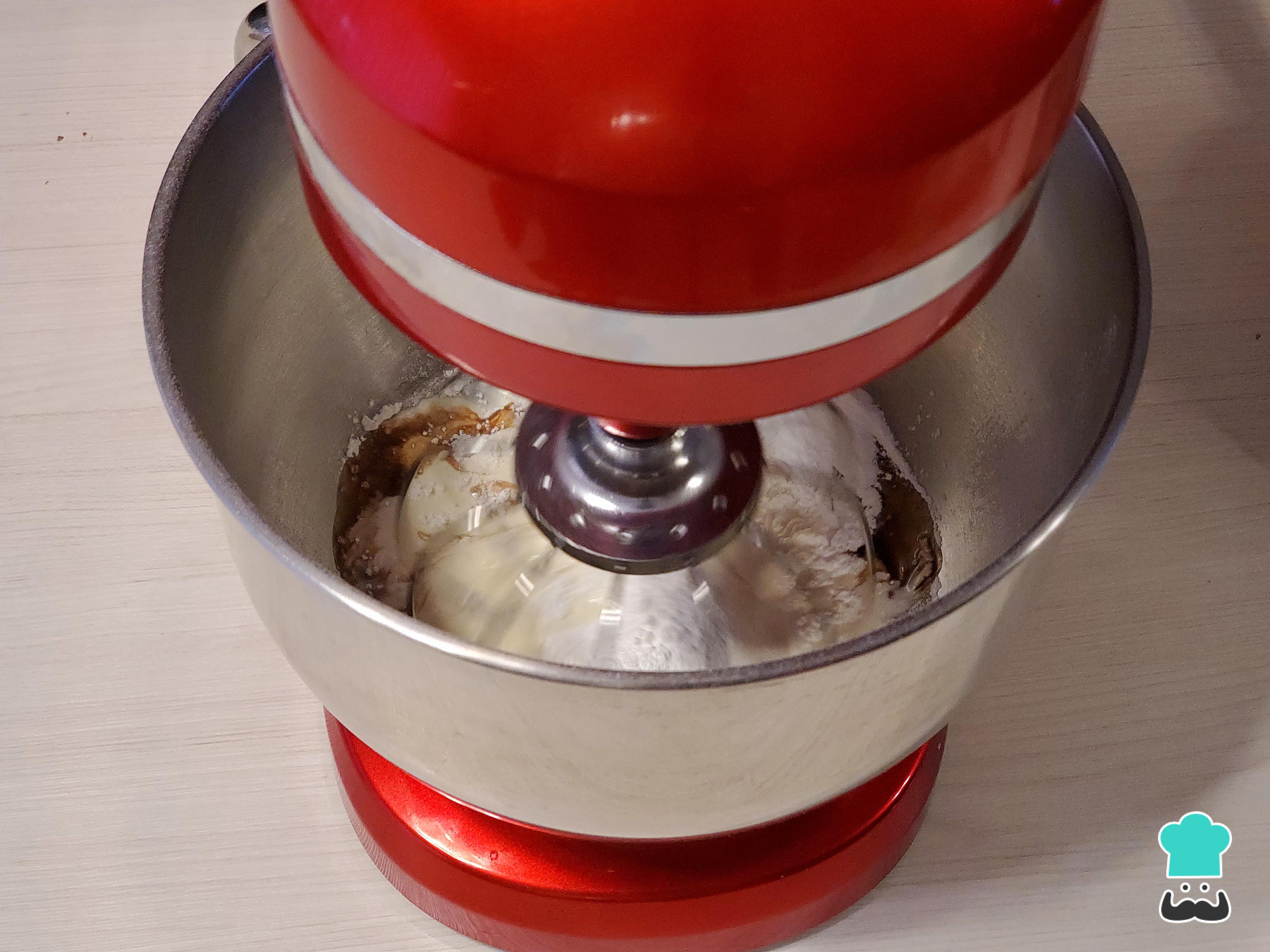 Amasa durante 10 minutos a máxima velocidad o hasta que la masa se sienta suave y se vea aterciopelada.