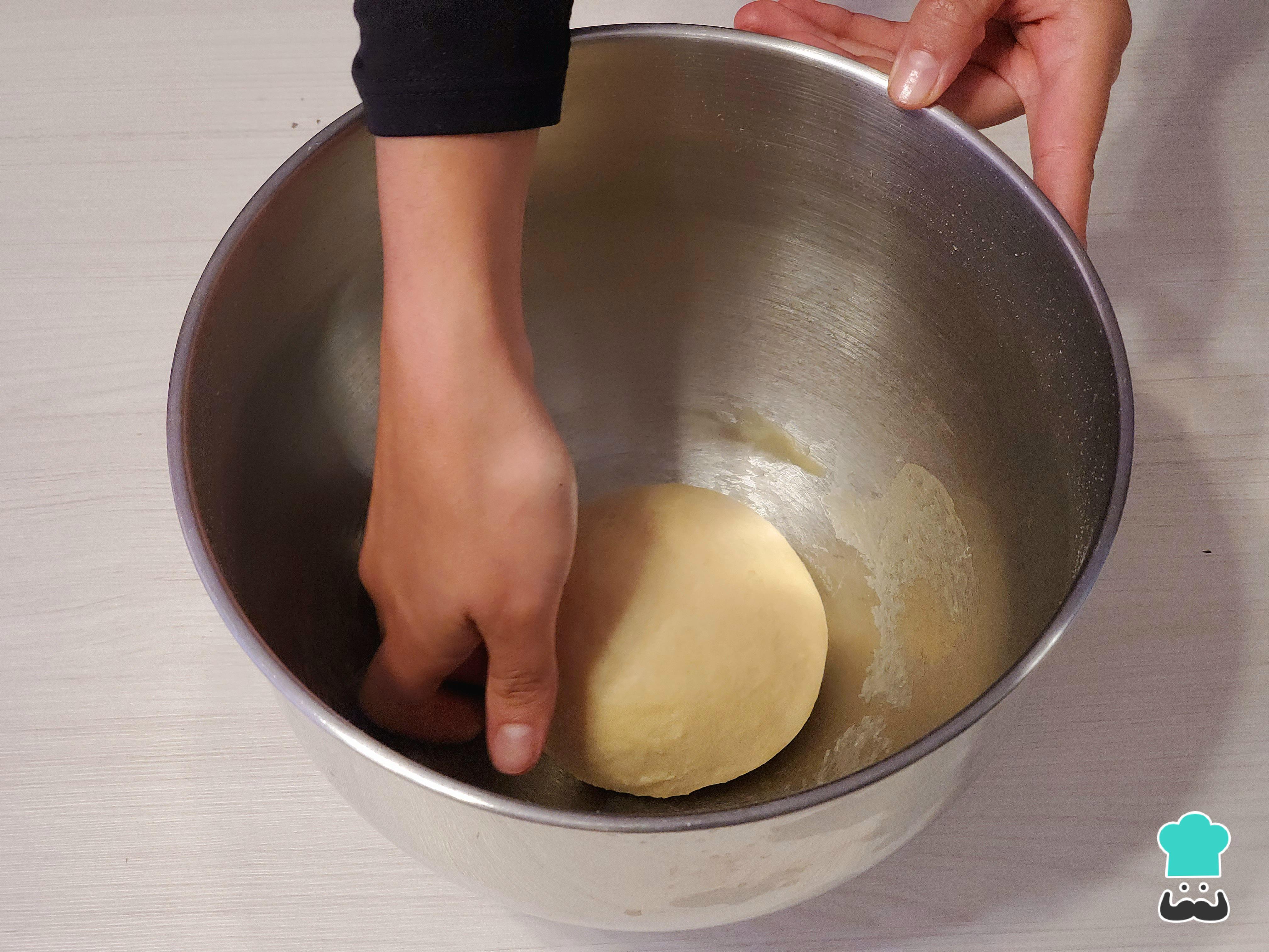 Bolea un poco la masa, colócala dentro de un bowl y cúbrela con un paño húmedo o papel film. A continuación, llévalo al área más cálida de la casa para que leude hasta duplicar su volumen.
