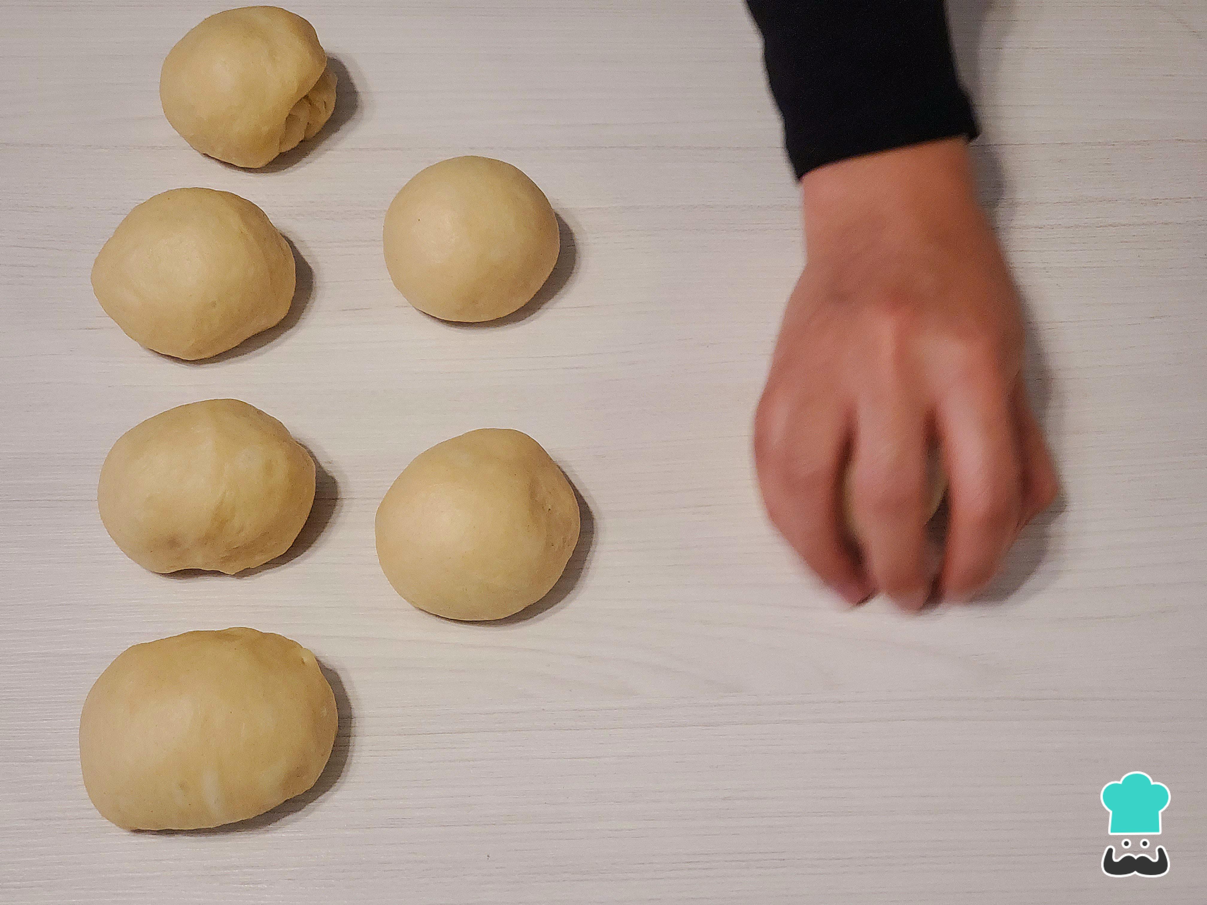 Cubre estas piezas con el paño húmedo o papel film para evitar que se sequen y boléalas una a una. Luego, pincha la unión que se hizo en la base para evitar que se abra durante el leudado.
