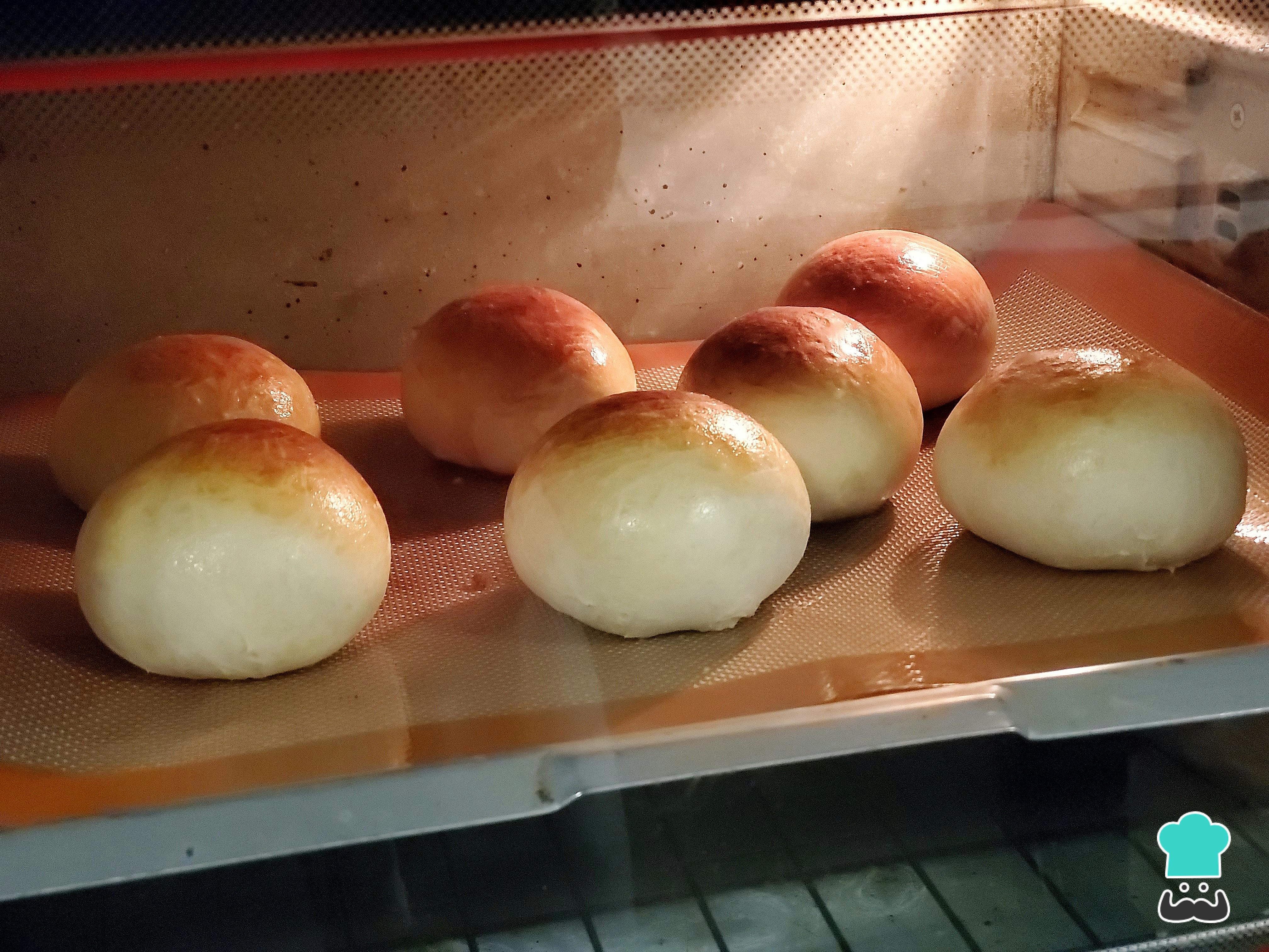 Acomoda estas masitas en una placa enmantecada o con un tapete de silicona, deja una buena separación entre ellas y cúbrelas nuevamente para dejarlas en un área cálida para que leuden hasta duplicar su volumen.
