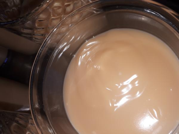 Para hacer este serenito de vainilla, disuelve en una taza de leche la fécula de maíz hasta que no quede ningún grumo.