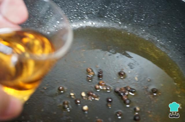 Añade la copa de coñac. Déjalo 2 minutos hasta que reduzca el alcohol.