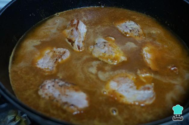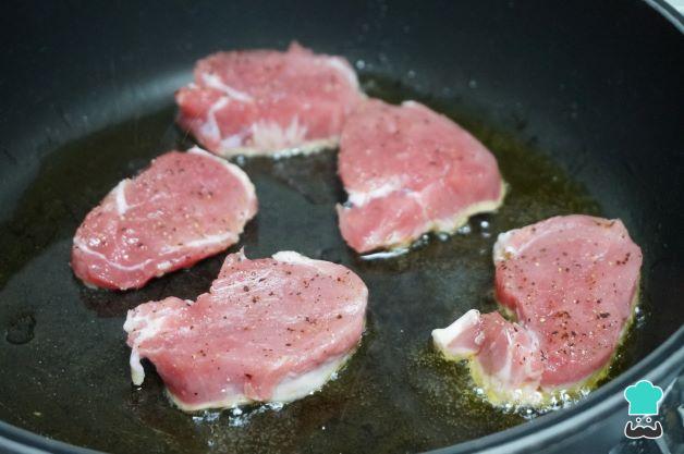 ¿Te preguntas como hacer solomillo de cerdo en salsa tradicional? Pues bien, para empezar con la receta de solomillo de cerdo en salsa española, primero limpia el solomillo de grasa. A continuación, córtalo en trozos de unos 2 cm y salpimienta. Asimismo, coloca una cazuela amplia a fuego alto con un chorro de aceite de oliva, añade los trozos de solomillo y dóralos por los dos lados. Luego, retira y reserva.