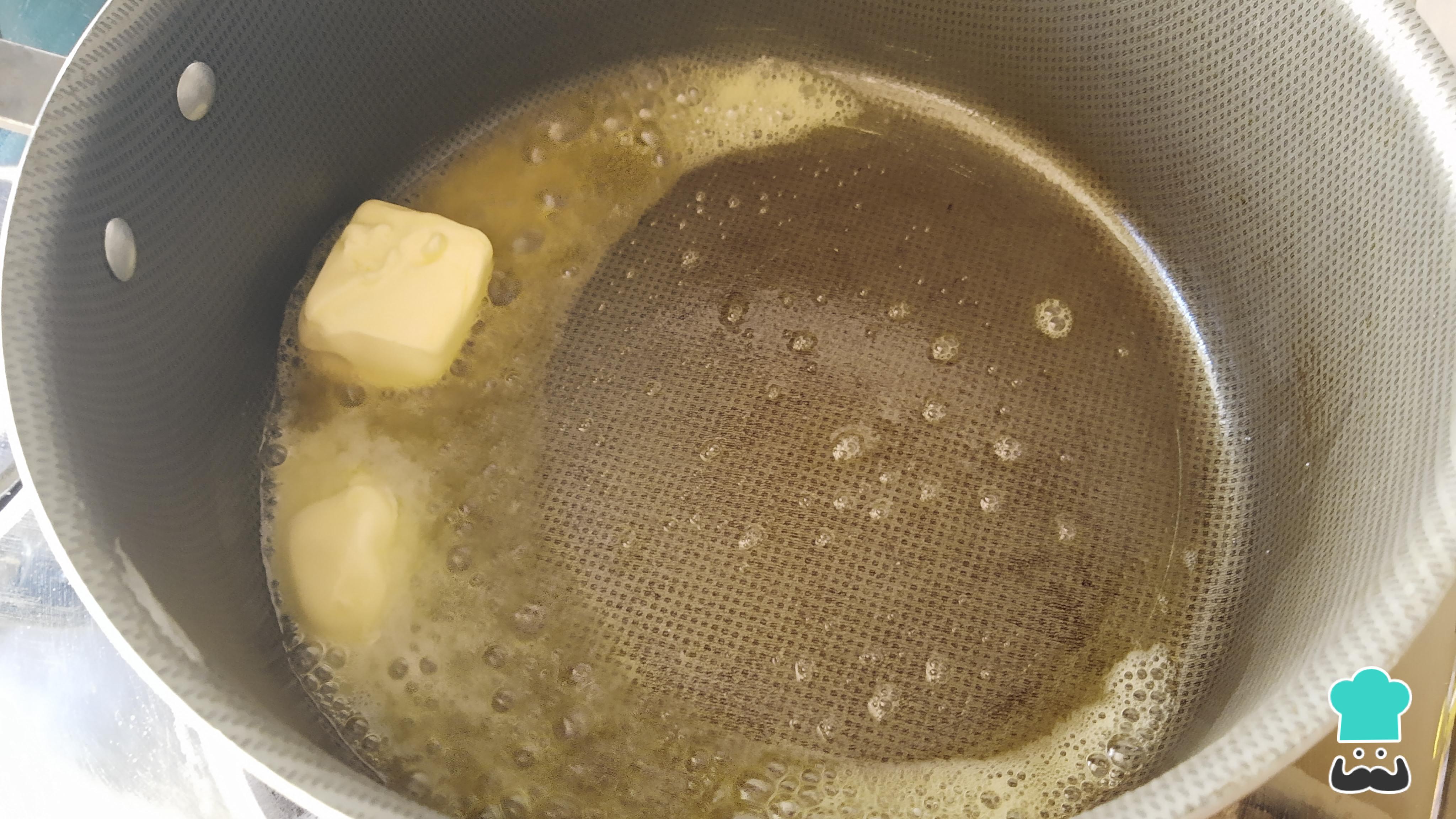 Mientras se cocina la pasta, en una olla calienta la mantequilla hasta que se derrita.