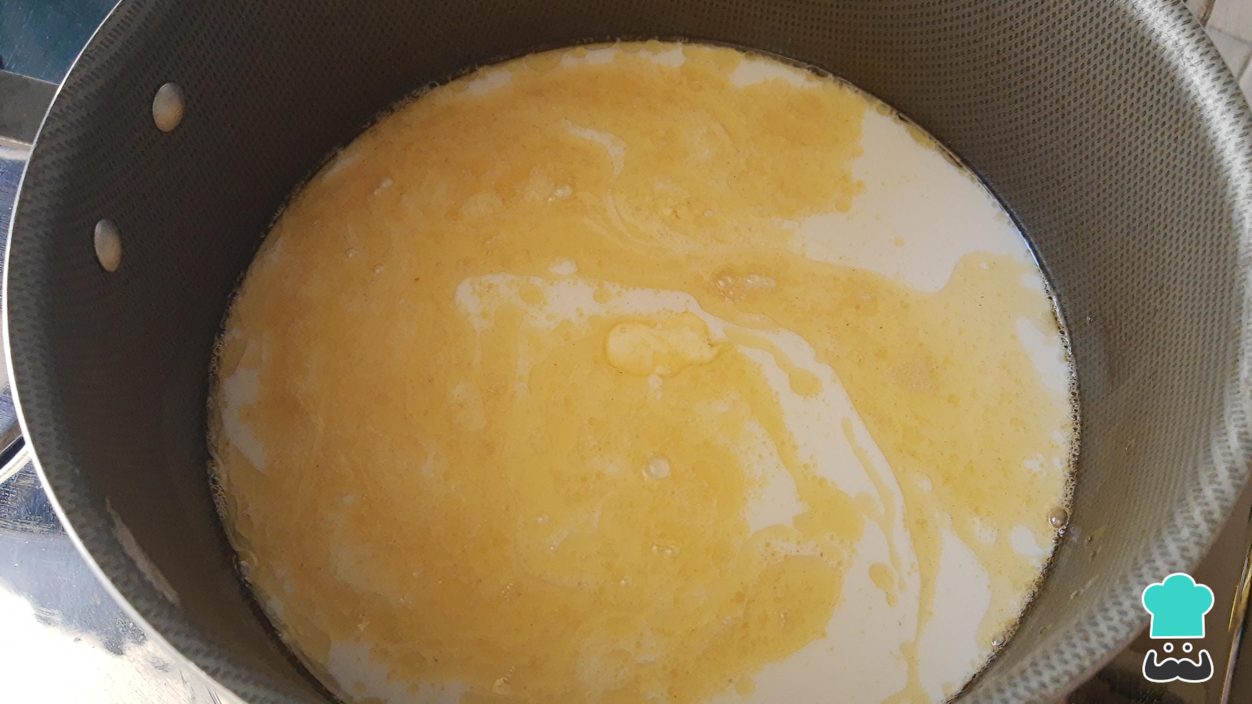 Vierte la leche evaporada y la leche semidescremada, mezcla muy bien y deja calentar durante 3 minutos.