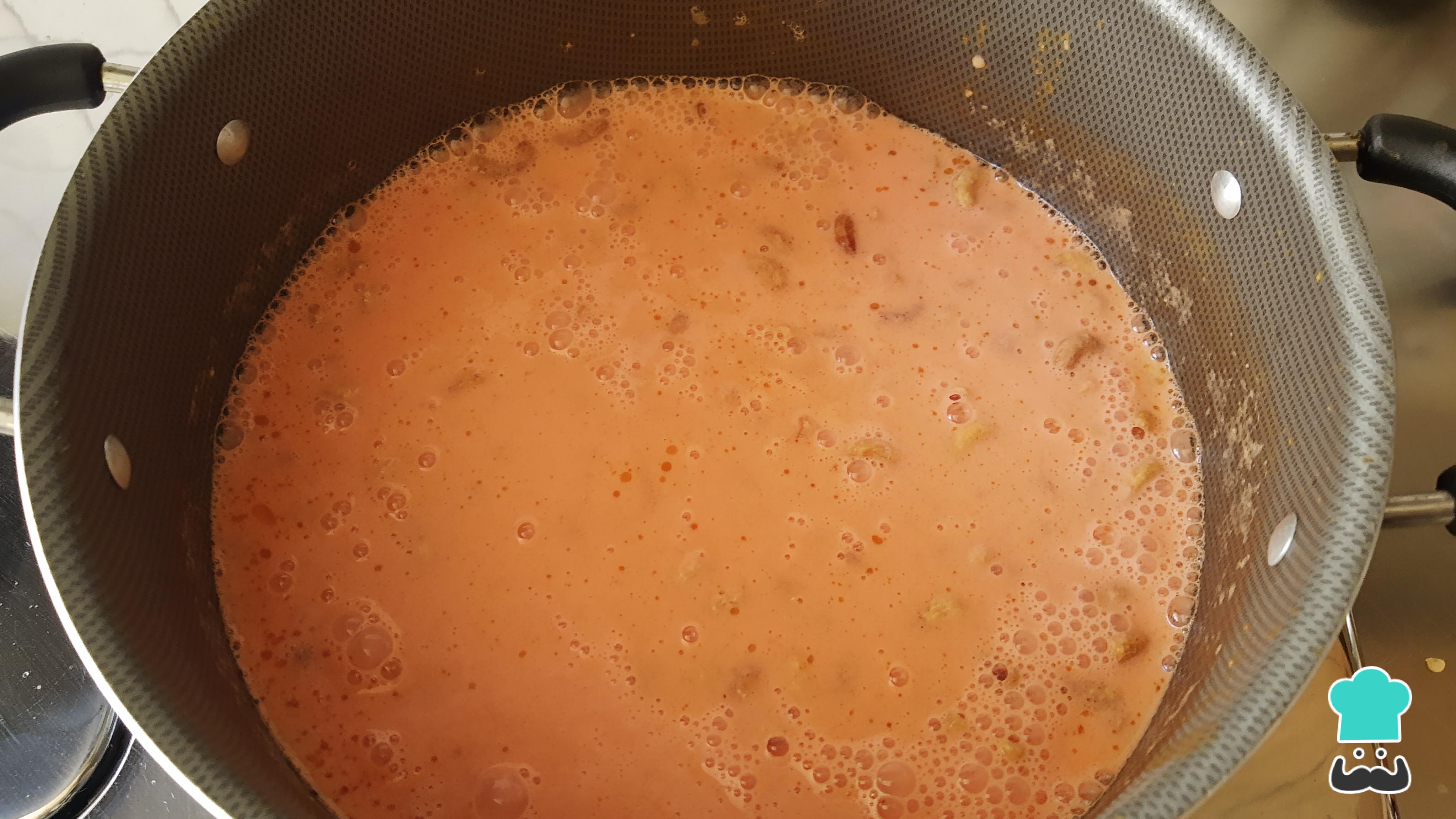 Vacía la mezcla licuada pasando por un colador antes, deja cocinar por 2 minutos.