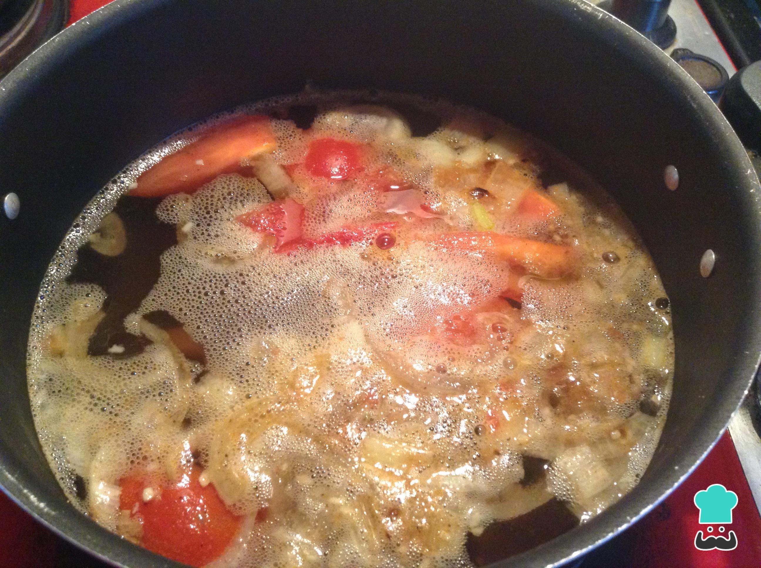 Adiciona el caldo de pollo en la olla donde tenemos nuestros vegetales y agrega orégano al gusto. Esta será la base de nuestra sopa mexicana. Deja cocinar esta base durante unos 20 minutos y retira del fuego.