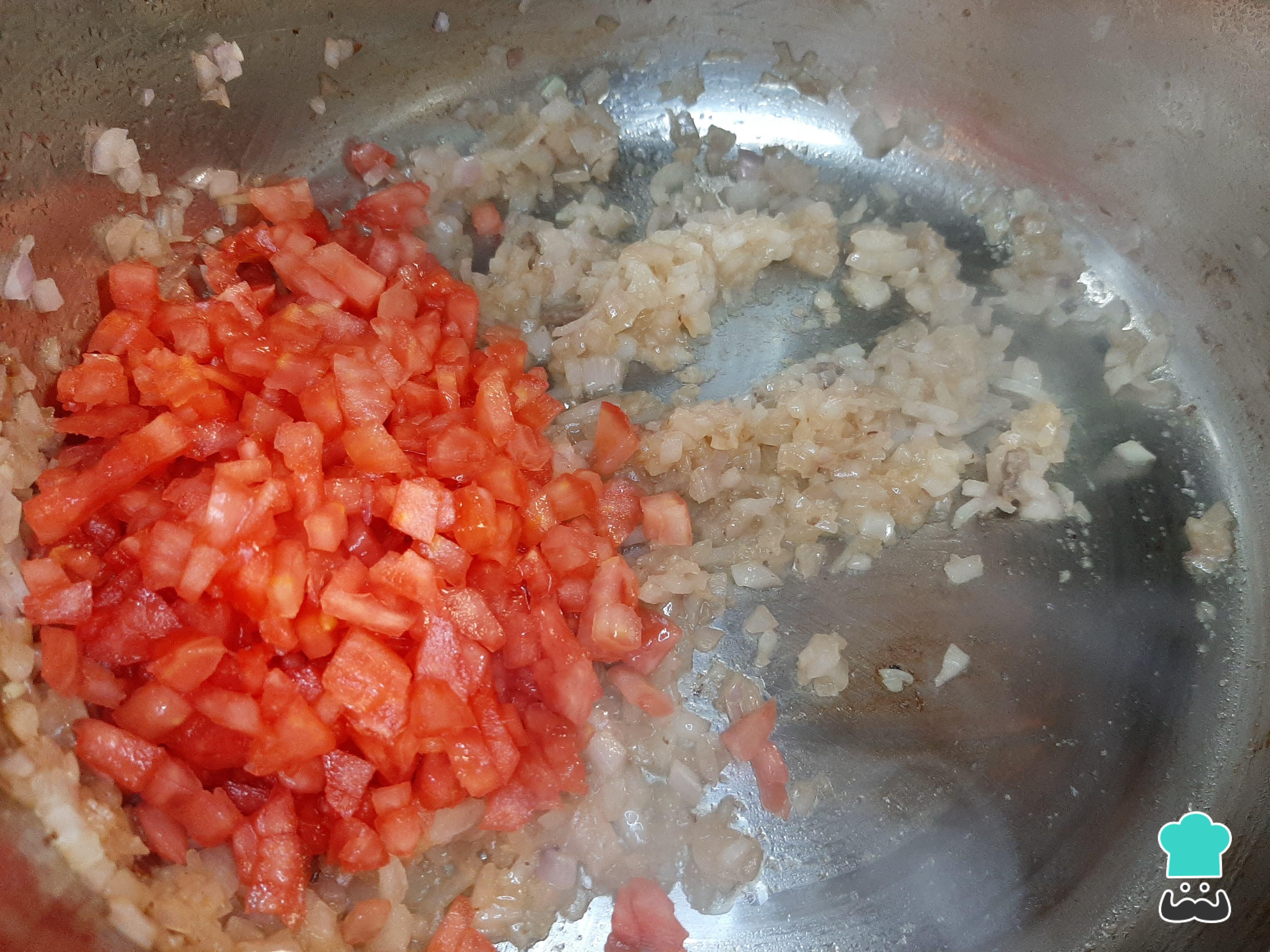 Agrega el tomate previamente pelado y cortado. Mueve con ayuda de una cuchara a fuego medio por 3 minutos.