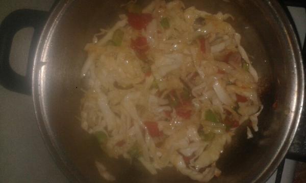 Por último, incorporamos el repollo cortado en tiras y mezclamos todos los ingredientes de la sopa de col. Dejamos que se cocine el repollo durante cinco minutos y agregamos agua hasta cubrir. Cocemos la sopa de repollo par bajar de peso hasta que el repollo esté tierno. Rectificamos de sal.