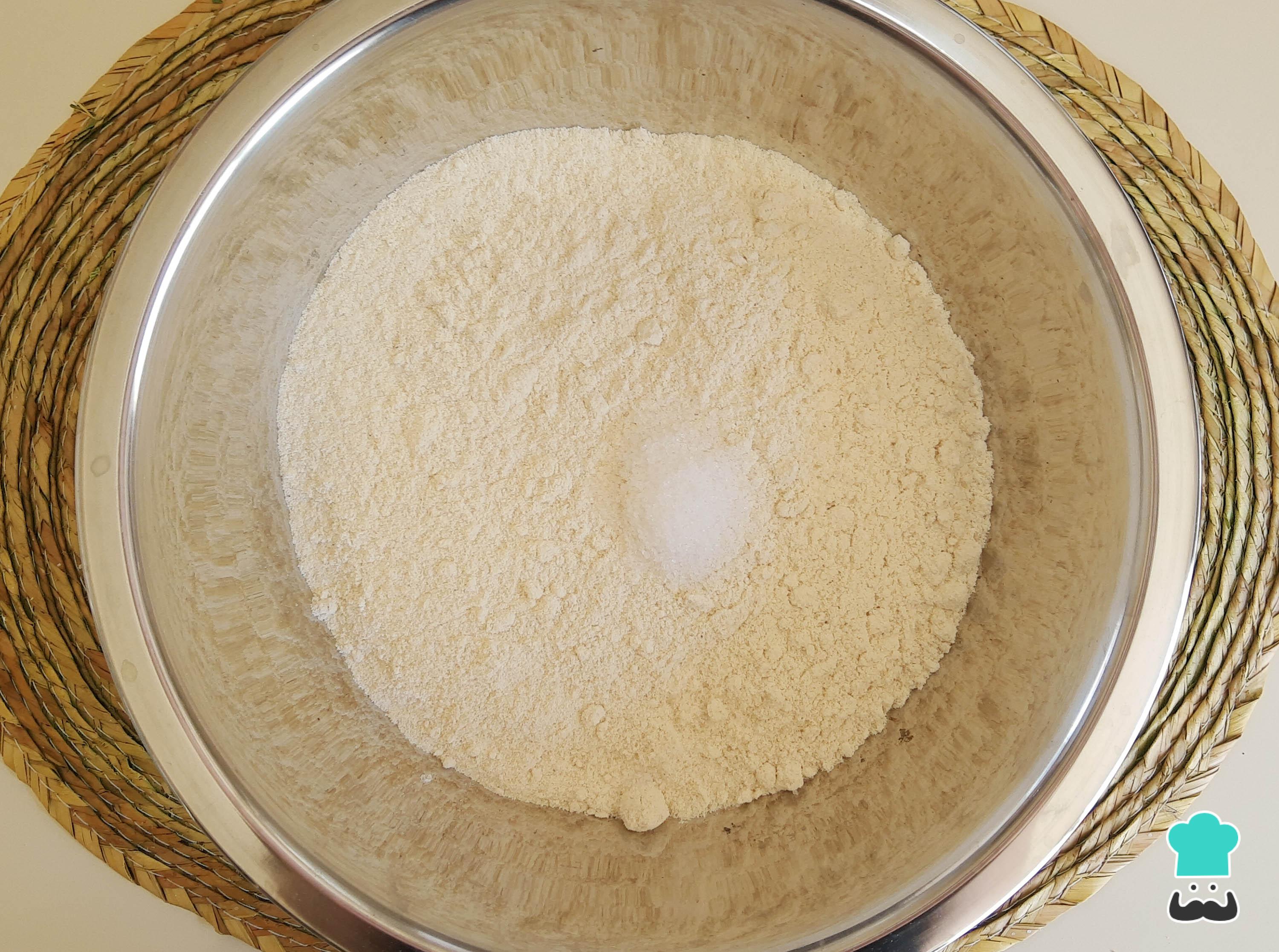 Para hacer los sopes, en un recipiente agrega la harina de maíz y la cucharadita de sal y mezcla bien.