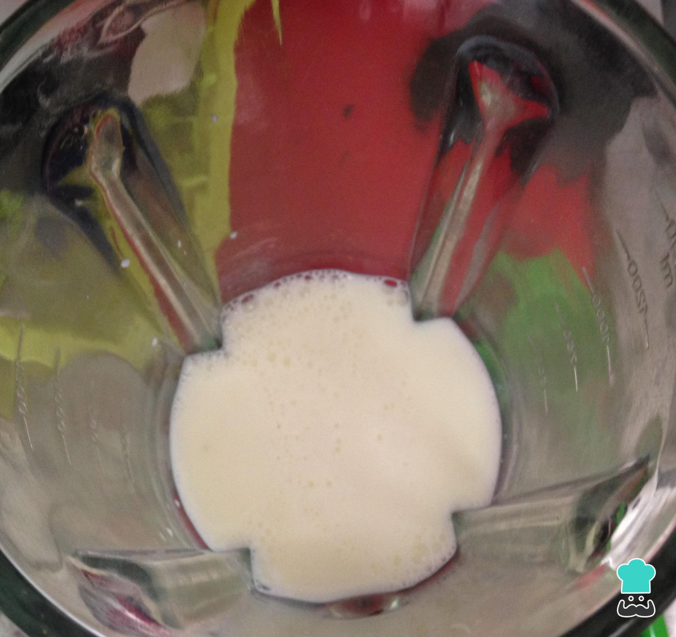 Aparte, mezcla en la licuadora la leche junto con el edulcorante. Bate el conjunto durante 2 minutos hasta que este último se haya disuelto por completo.