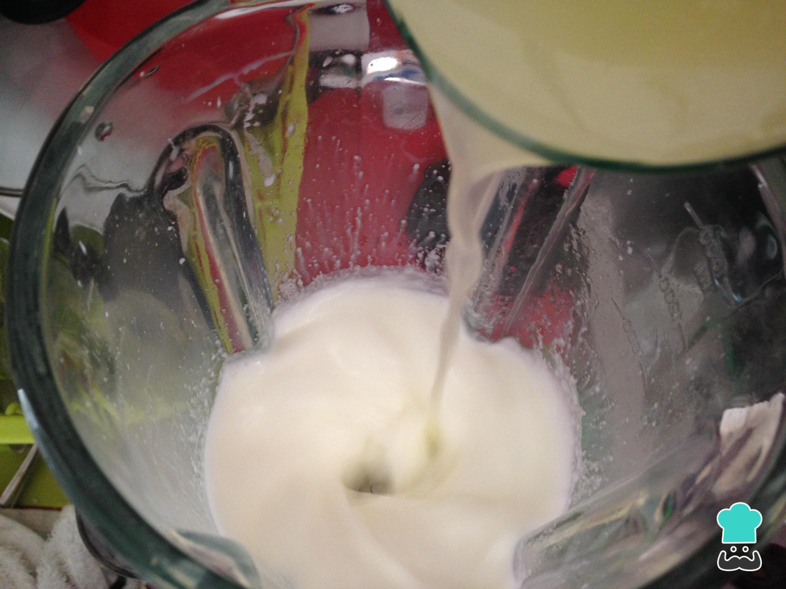 Seguidamente, y con la licuadora encendida, agregar el jugo de limón en forma de hilo. Ten cuidado de que no salpique mucho o si tu máquina lo permite, abre la pequeña abertura de la tapa y agrega el liquido por allí.