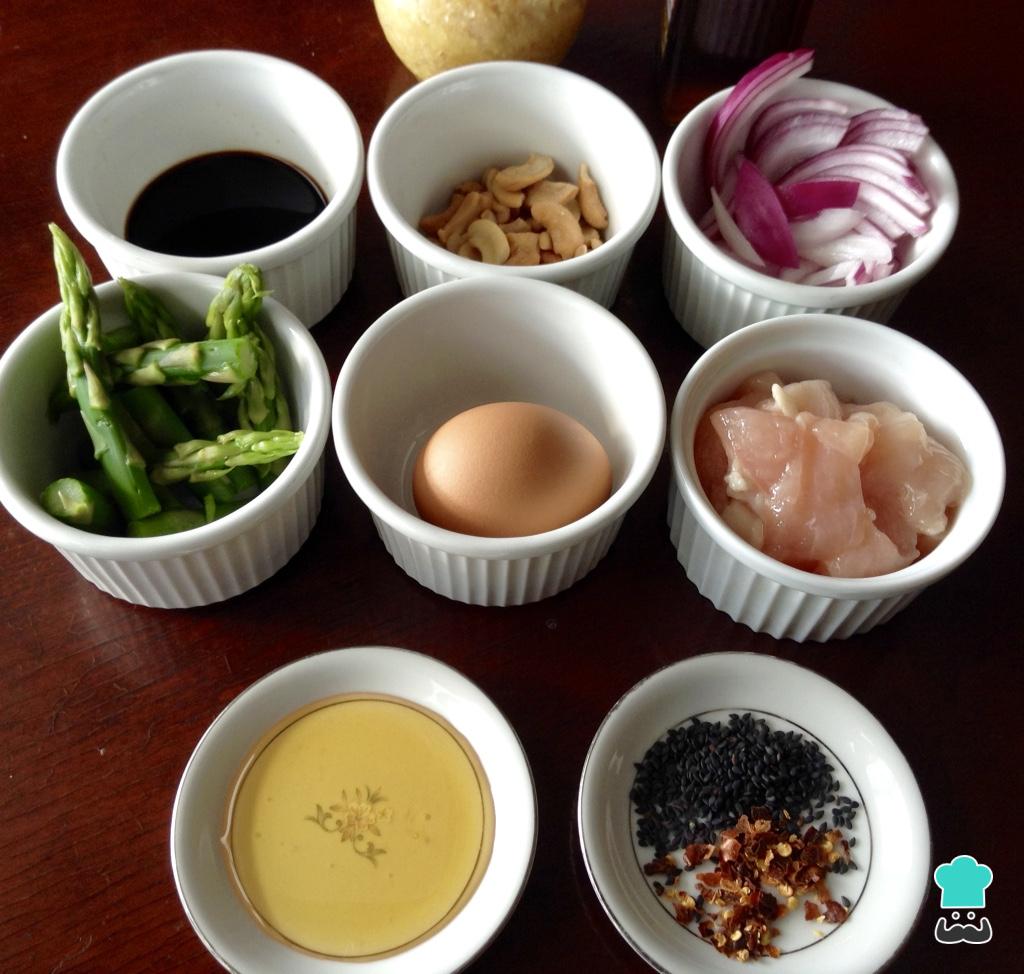 Para que puedas empezar a preparar la receta oriental de stir fry de pollo con verduras, debes alistar los ingredientes.