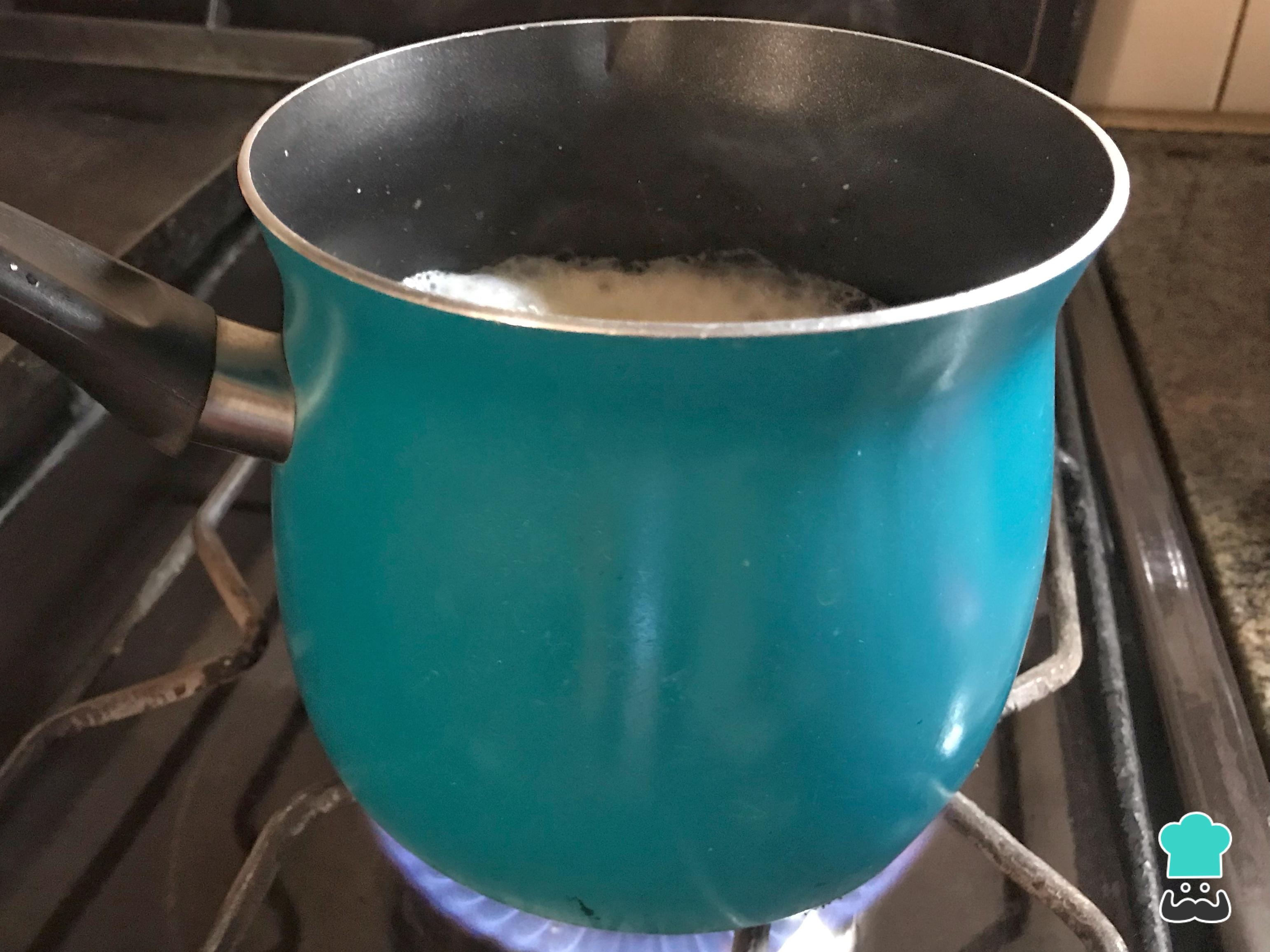 Mientras, prepara la salsa suiza. Para ello, disuelve la maicena con la leche en una olla. Llévala al fuego medio hasta que hierva, a partir de ese momento, revuélvela para que no se pegue ni se formen grumos. Condiméntala con nuez moscada y pimienta.