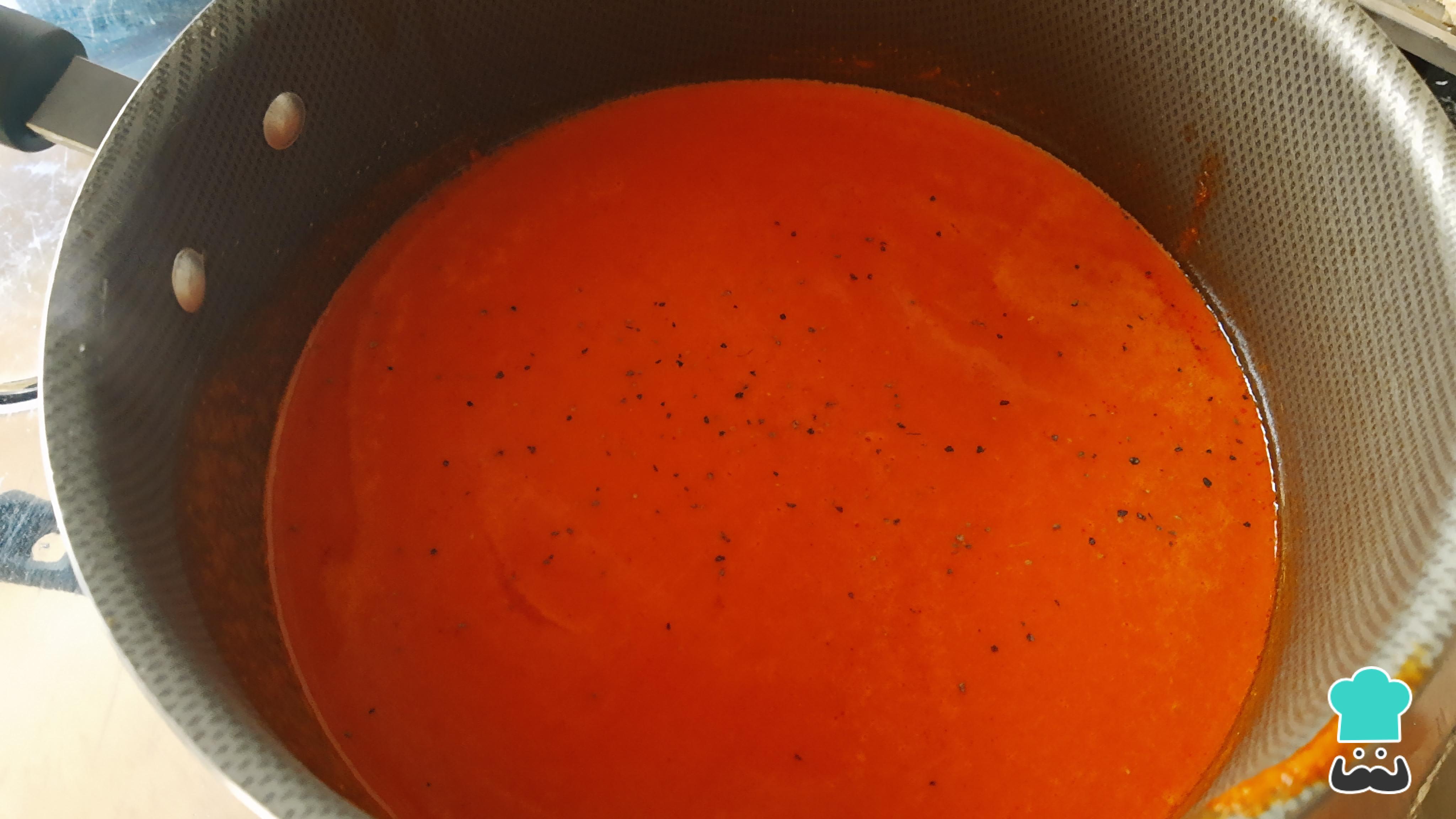 Lleva a licuar con media taza de agua y media taza de aceite vegetal. Después, sofríe esta salsa en una olla y sazona con sal, pimienta al gusto y una pizca de comino, deja hervir por 5 minutos y, luego, baja el fuego.