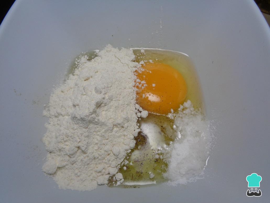 Vamos a comenzar preparando nuestra mezcla para el capeado: para esto colocamos en un tazón los huevos, el aceite, la sal, la pimienta, la cerveza, el brandy, el polvo para hornear, el orégano y la harina de trigo, mezclamos perfectamente bien y llevamos a refrigerar por 30 minutos.