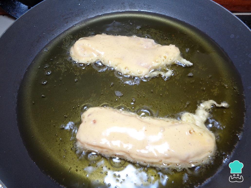 Una vez listas las tiras de pescado llevamos a freír en un sartén con suficiente aceite muy caliente, dejando freír hasta que se observe dorado el capeado. Retiramos del aceite y las colocamos sobre papel absorbente para retirar el exceso de grasa.