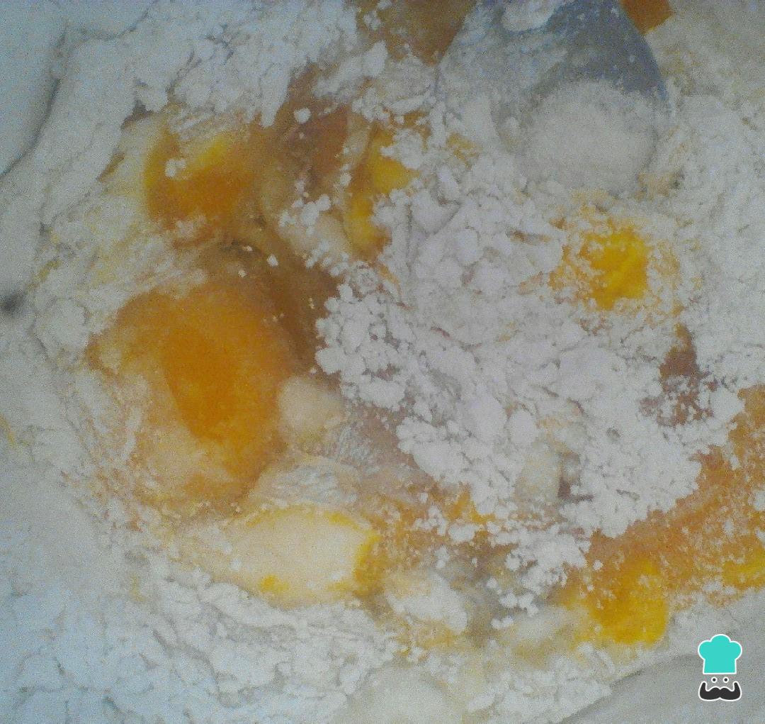 Colocar en un bol la harina, realizar una corona en el centro y agregar los huevos , sal y aceite de oliva, y si es necesario agregar 1 cucharada de agua.