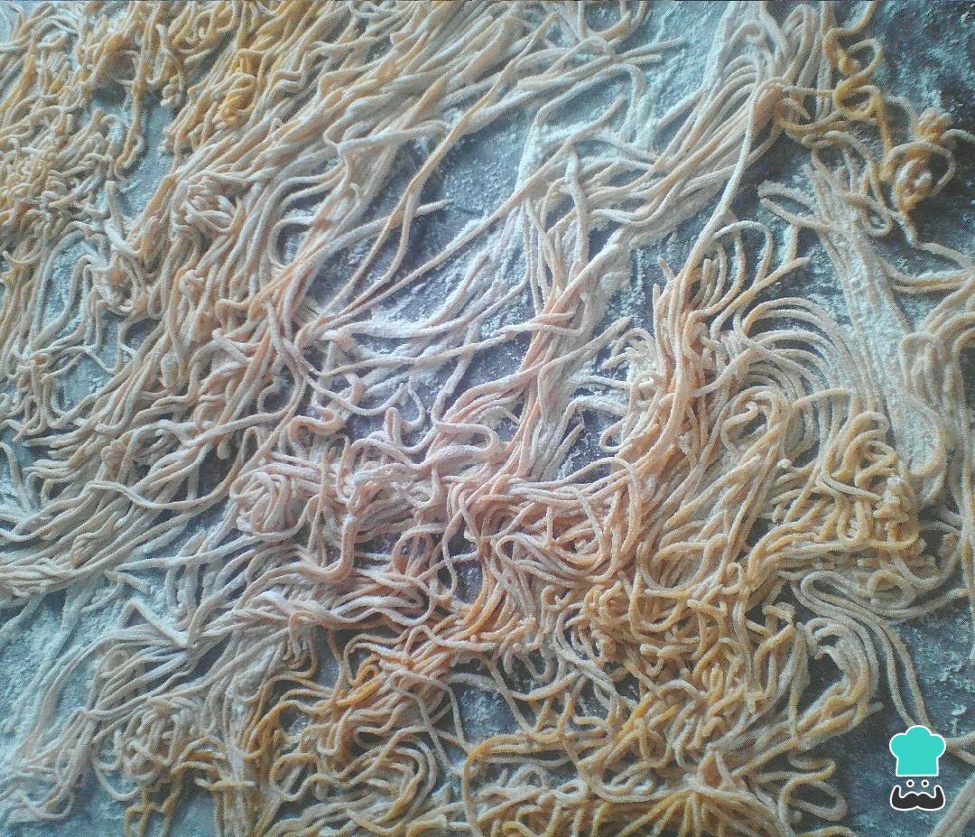 Cocinar los fideos caseros en abundante agua hirviendo con sal de 2 a 3 minutos por ser una pasta fresca.