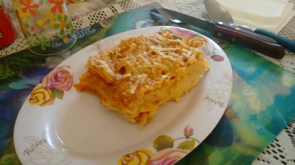 Vacié en un molde refractario, cubra con el queso y hornee hasta que gratine.