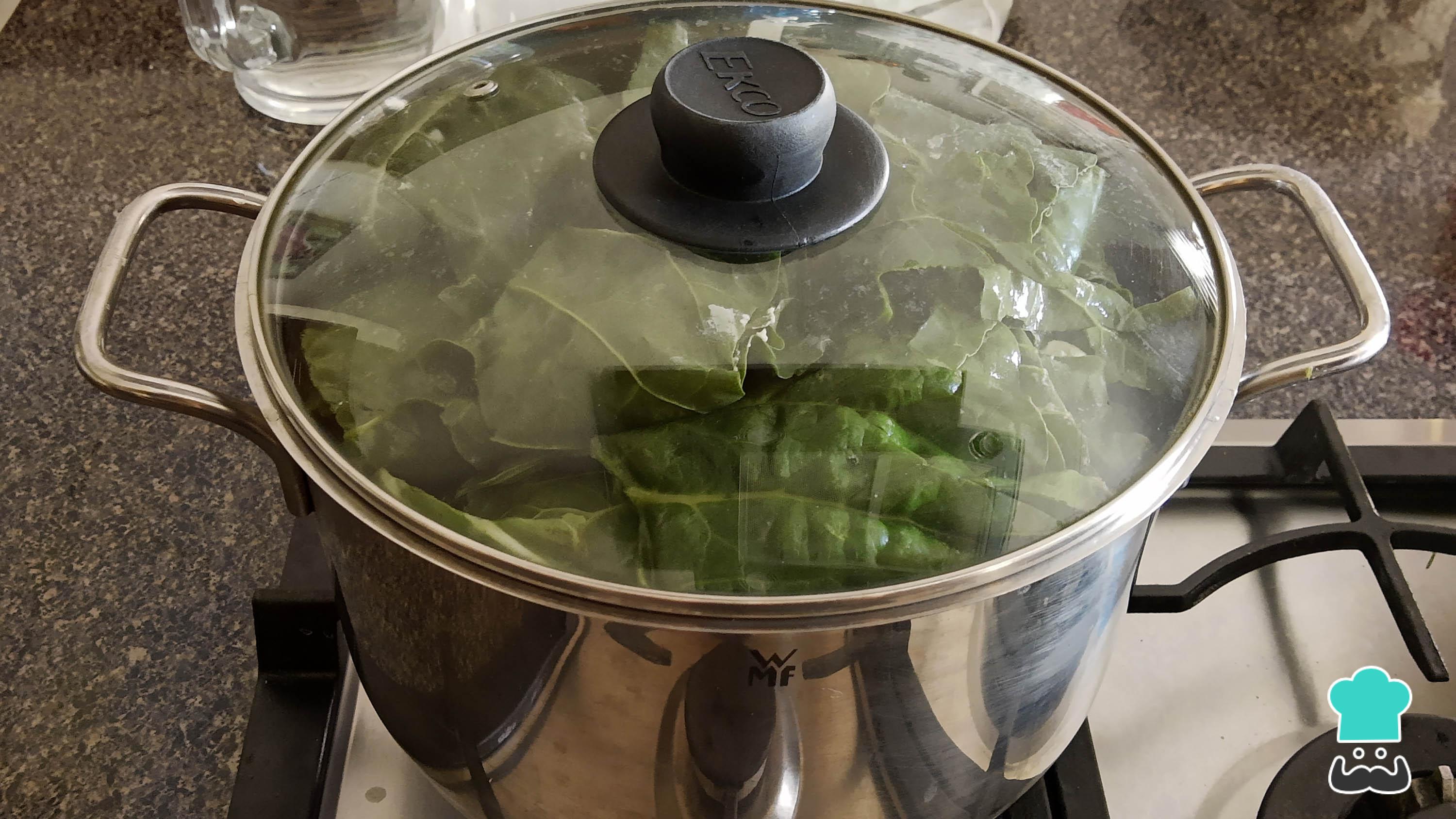 Limpia las hojas de acelga y corta el tallo, ya que únicamente vas a utilizar la hoja para hacer los tamales de ceniza.