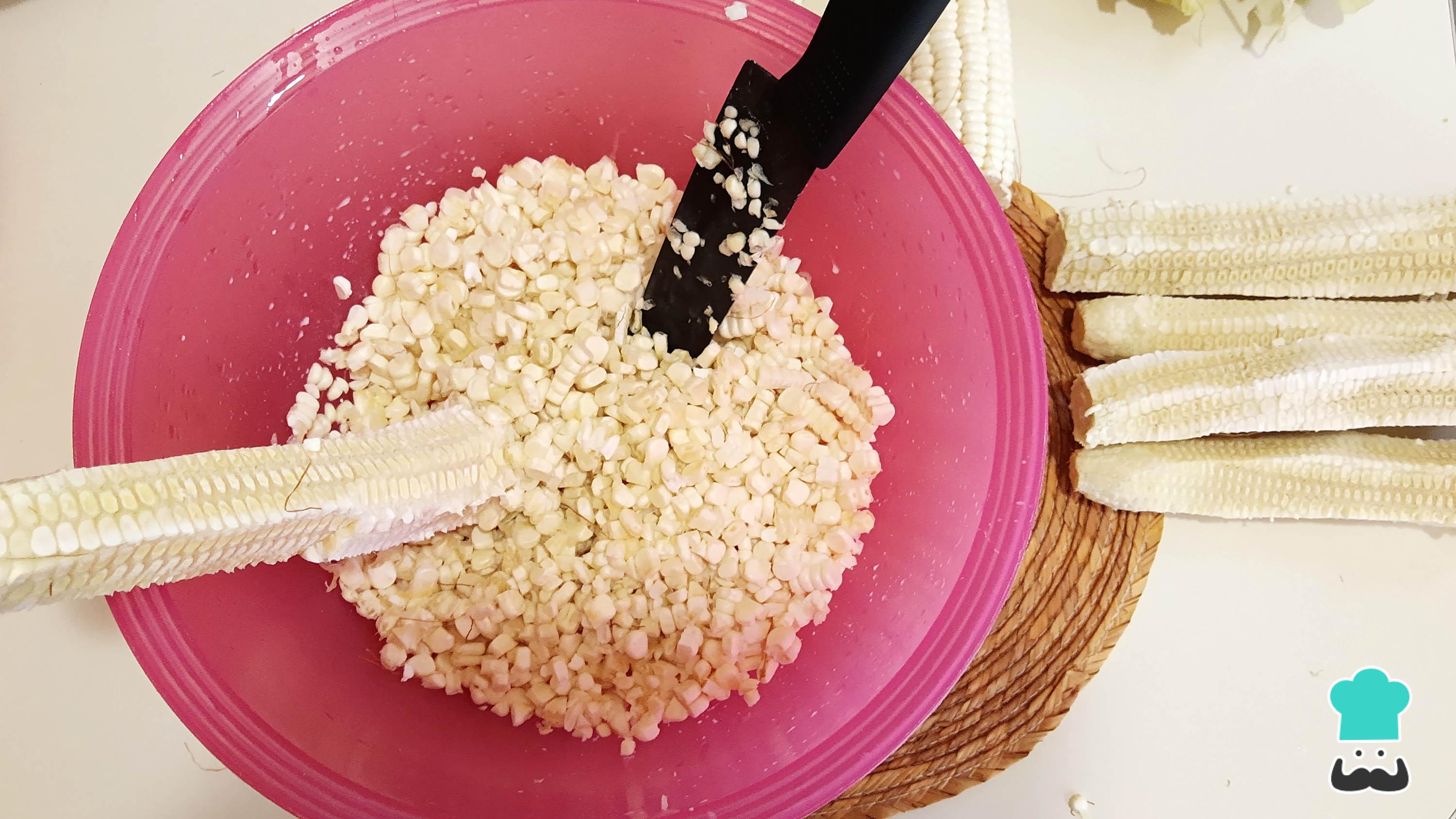 Truco: la sal intensificará el sabor del elote. Puedes utilizar un procesador de alimentos si no quieres usar la licuadora, funcionará de igual manera.