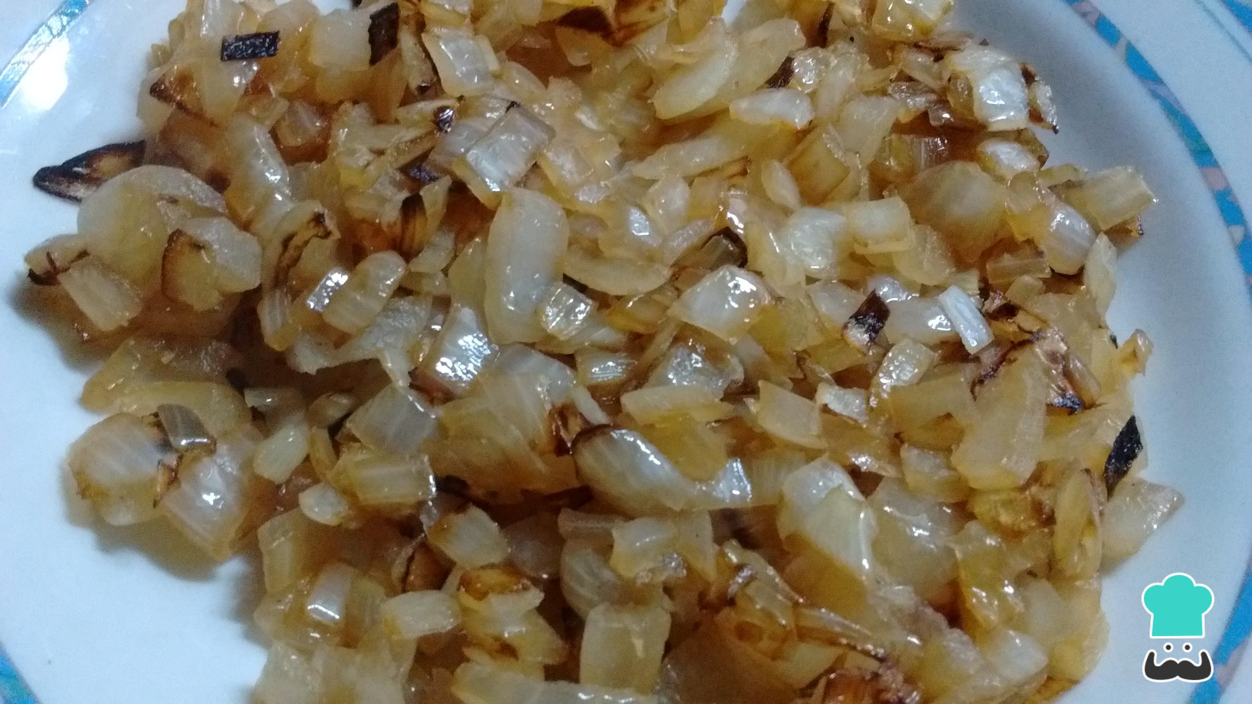 Calienta una cucharada sopera de aceite en una sartén y dora la cebolla. Reserva.