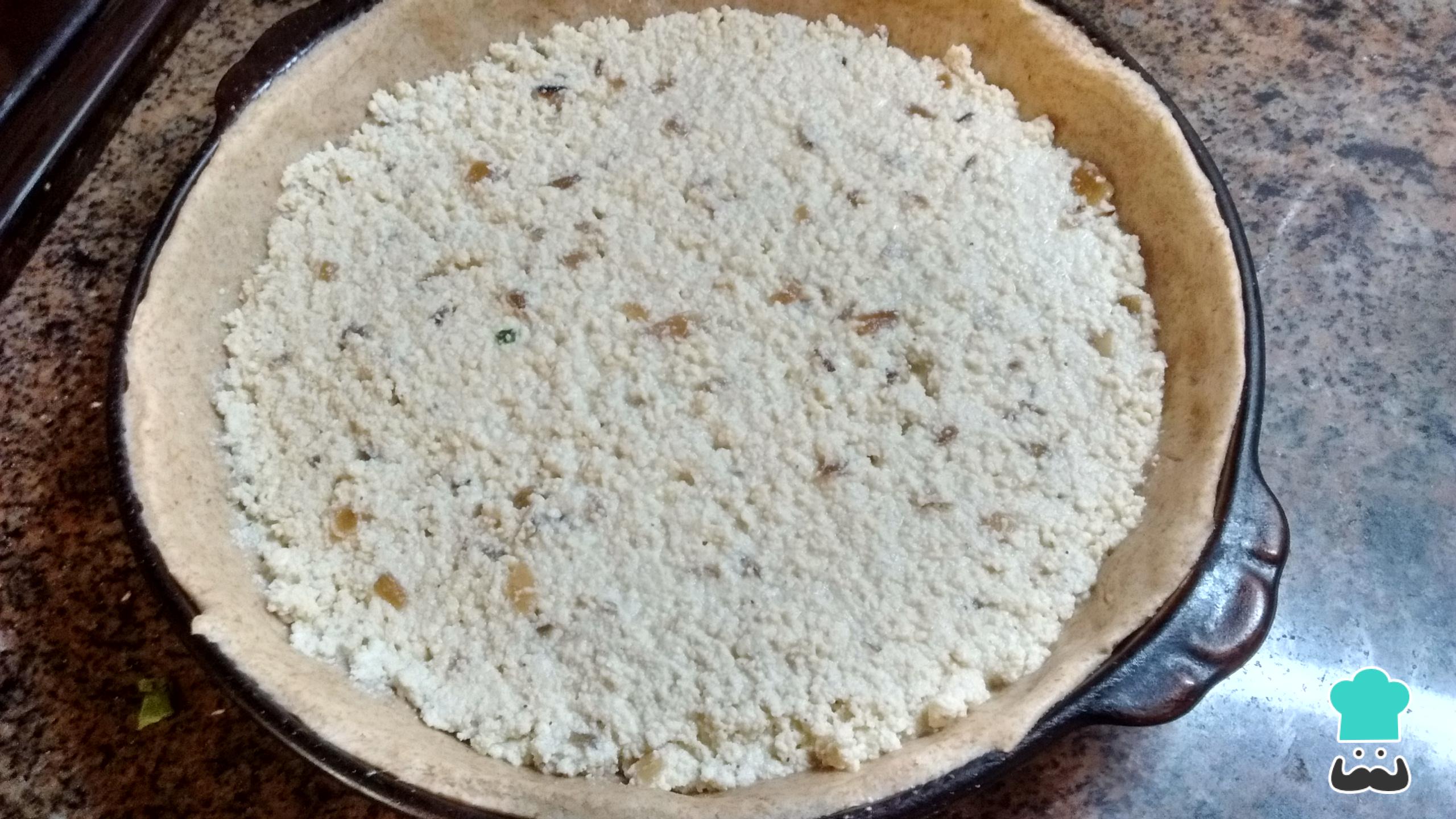 - De todos modos, es un relleno con bastante humedad, por tanto, puedes espolvorear la base de la tarta con avena o pan rallado para que la masa quede más sequita.
