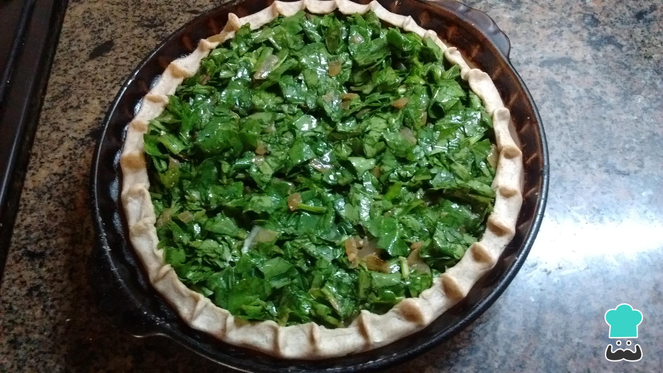 Ahora agrega el relleno de acelga, encima de la ricota y lleva a horno precalentado a 200 °C por aproximadamente 25/30 minutos hasta que esté cocida.