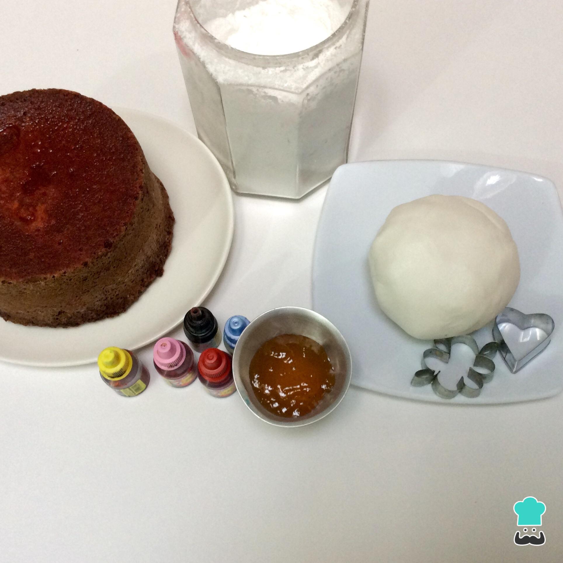 Para esta tarta decorada Peppa pig lo primero que debes hacer es alistar todos los ingredientes, la tarta que yo use es un queque de chocolate si deseas hacerla no olvides revisar la receta acá en la página, lo mismo para el fondant casero.