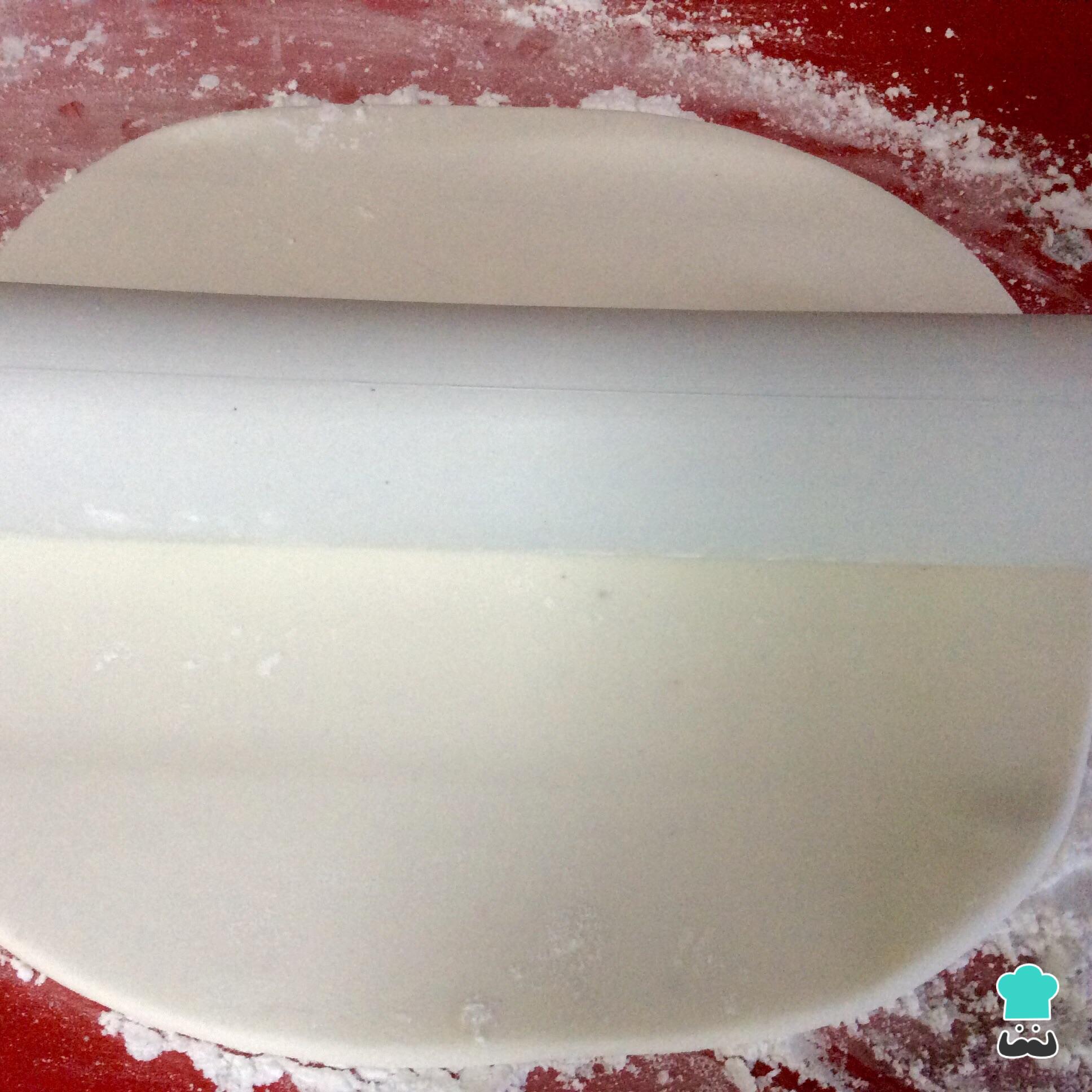 Ahora en una superficie plana con sudar impalpable estira el fondant hasta que quede bien liso y plano, con tus manos mide el tamaño de la torta y asegúrate que el fondan tenga una medida más grande.