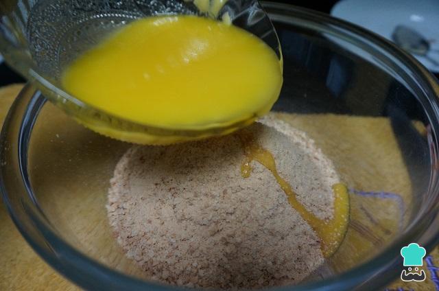 Para hacer la base de galletas, derretimos la mantequilla el microondas durante un par de segundos y mezclamos con las galletas trituradas hasta formar una masa y que ambos ingredientes se integren por completo.
