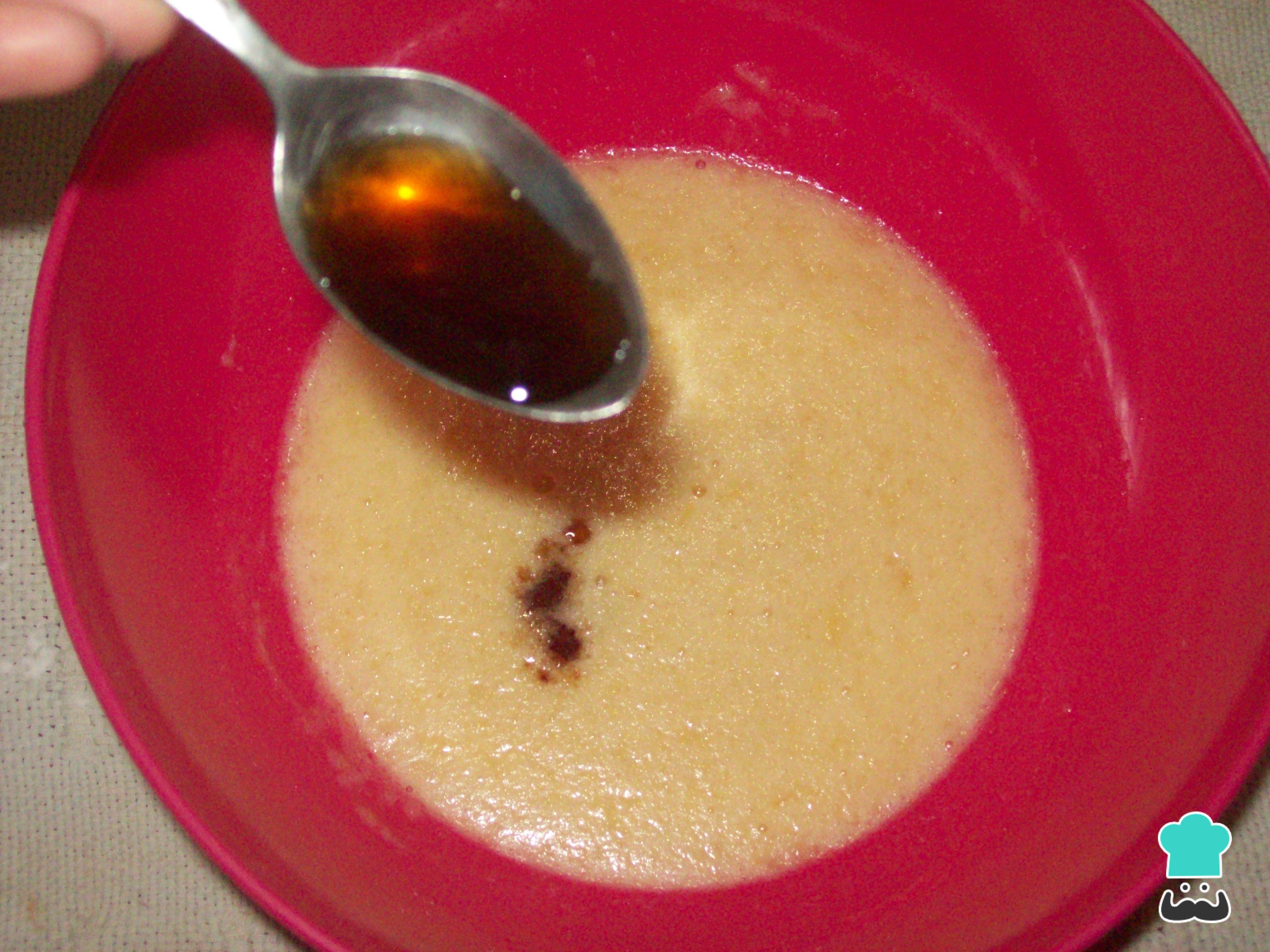 Añadir la esencia de vainilla para saborizar la mezcla de la masa de nuestra tarta de gelatina. Mezclar durante unos segundos.
