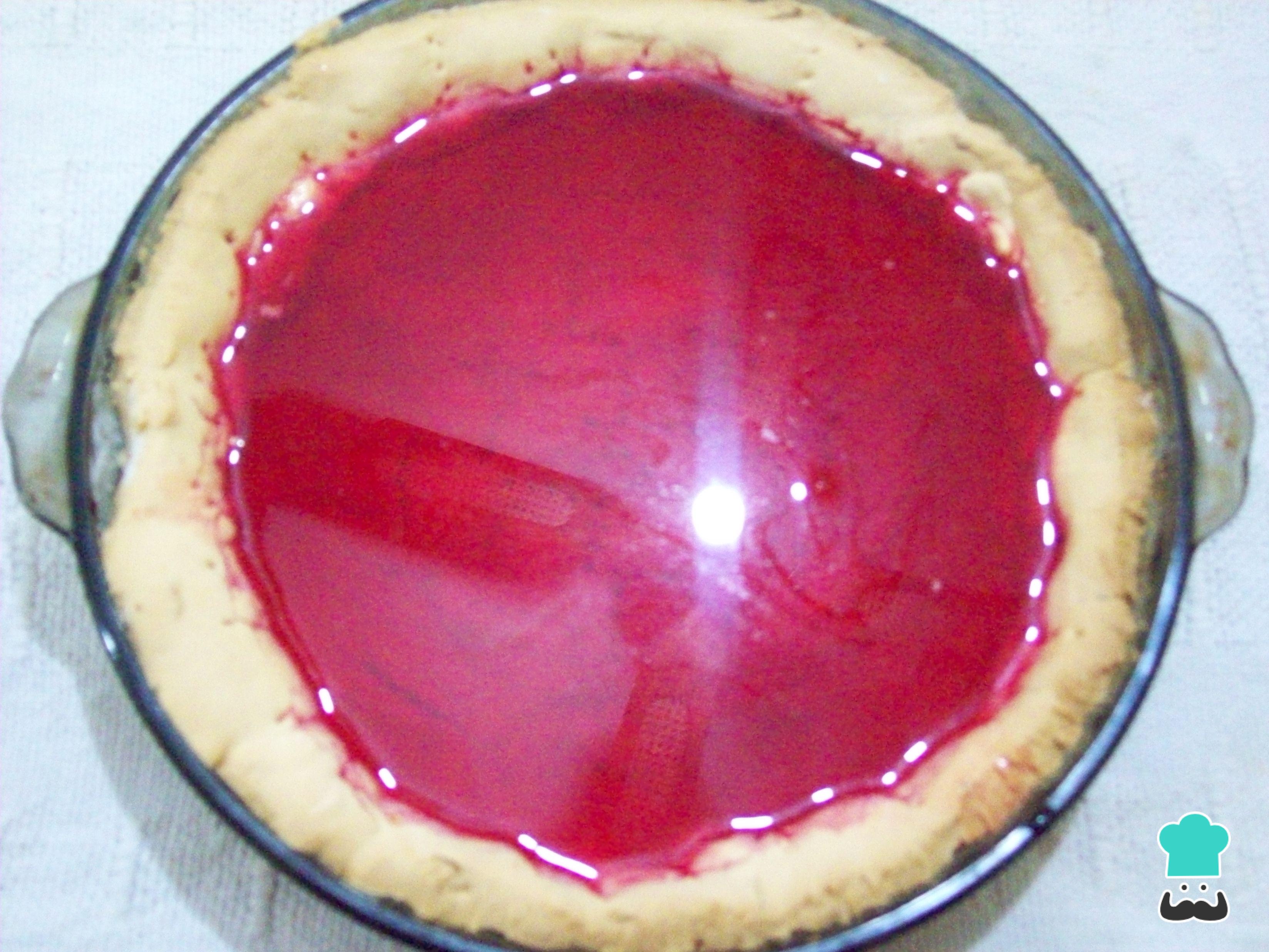 Truco: Asegúrate de esperar que la gelatina de fresa no tenga una consistencia acuosa al verterla sobre la tarta, ya que de hacerlo la masa te absorberá el líquido.