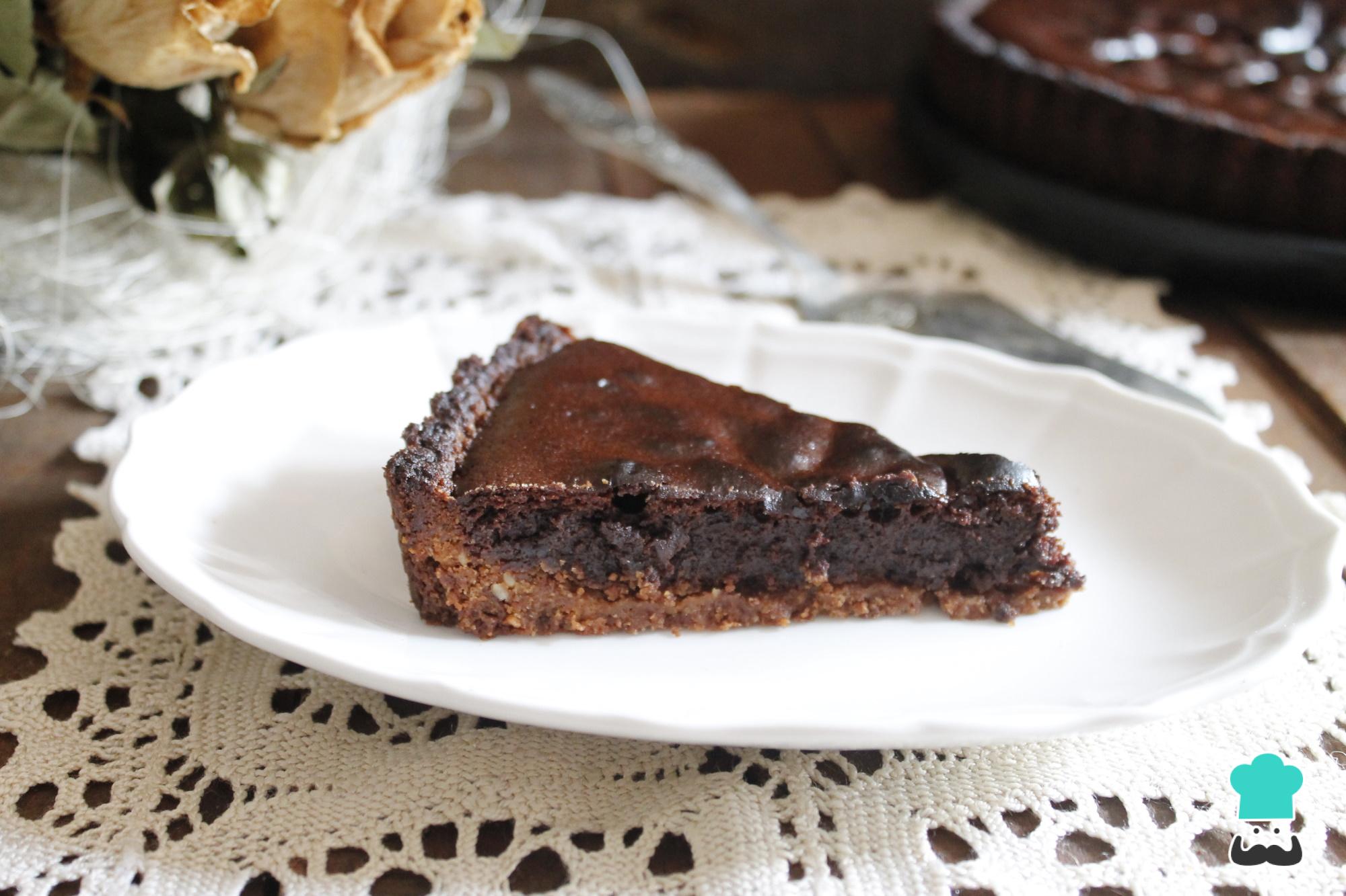 Sirve la tarta de chocolate y leche condensada cortada en pequeñas porciones. Te durará varios días guardada en el frigorífico. Como ves, queda con una base crujiente y un relleno muy jugoso, ¡toda una delicia!