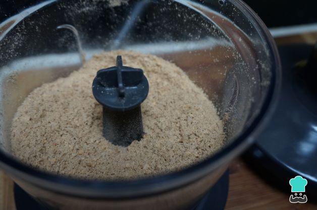 Para hacer la tarta de limón sin horno de la abuela, lo primero que debes hacer es preparar la base. Para ello, tritura las galletas en un robot hasta dejarlas en polvo.