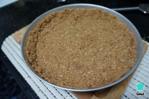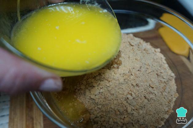 Derrite la mantequilla unos segundos en el microondas y mezcla con las galletas hasta que quede una masa compacta.