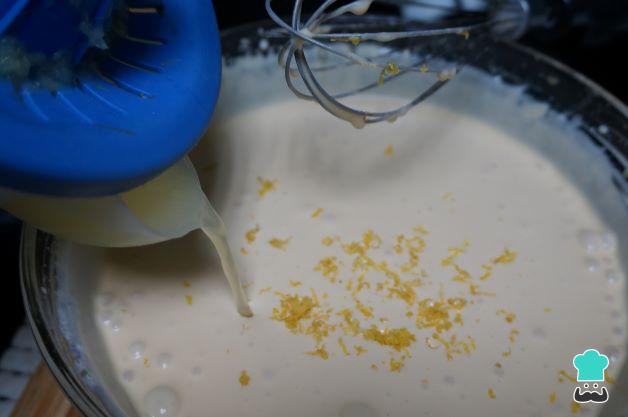 Ralla los dos limones y saca el zumo de ellos. Añádelo al bol, junto con la crema. Vuelve a batir, notarás que al añadir el zumo de limón se espesará enseguida la crema.